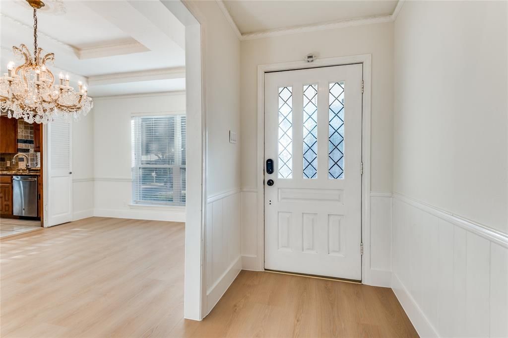 Idyllic Carrollton lives on in this single-story home. A mere 5 minutes away from George Bush Turn Pike. This charming and well-maintained home offers new installed luxury vinyl plank without carpet, new paint throughout and upgraded light fixtures. Living room is very spacious and open with built in cabinets. The bedrooms are privately situated away from the common areas. Master suite is enhanced by dual sink, walk in closet, tub for your relaxation. The bathroom features exotic tiles with bold patterns. Kitchen boasts granite countertop, trash compactor, and good size cooktop. Backyard with patio is good for family entertaining.