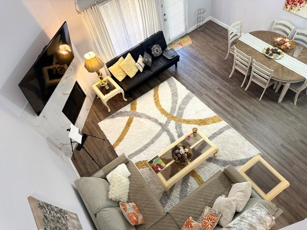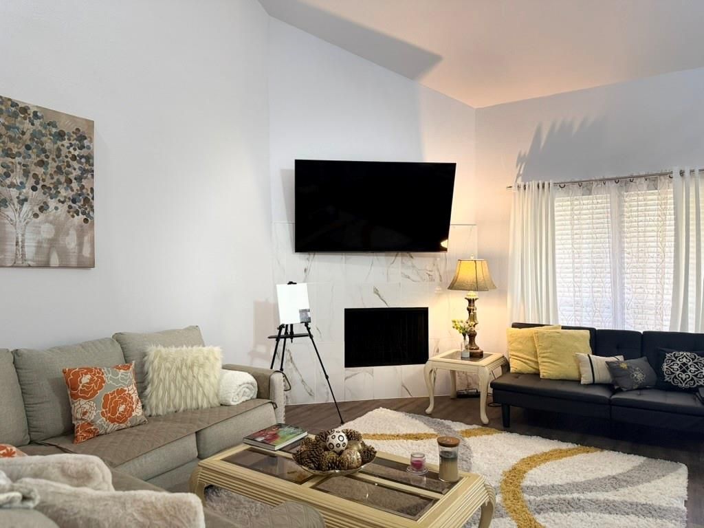This cozy home features 2 bedrooms, 2 full baths, and an additional half bath. The master bedroom includes a fireplace. The community has a swimming pool and covered parking.The landlord provides all the furniture and decor for your use, or you can choose only what you need. Move-in ready.