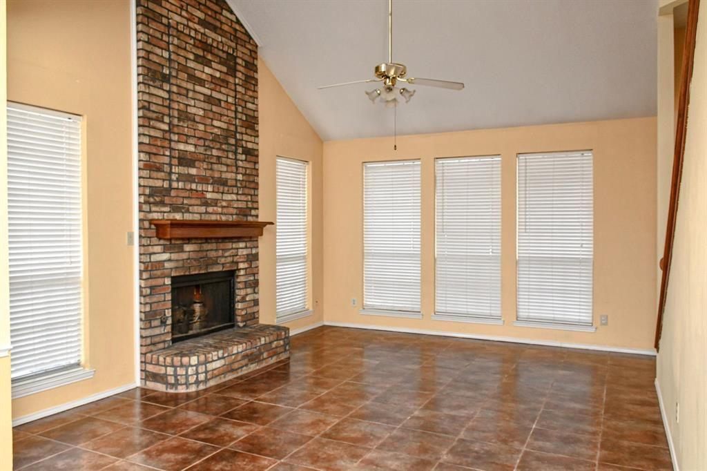 Beautiful floor to ceiling brick fireplace and rich wooden staircase are the focal points as you enter this lovely home. The adjoining dining room provides flex space and the double doors to the large outside patio invite entertaining or just hanging out. There is a completely remodeled kitchen with ceiling height cabinets, quartz counter tops, stainless steel appliances and a corner sink. The storage island is great for serving or providing additional prep space. There is also a pantry and a second eating area. The primary bedroom with a walk-in closet is on the main level. The adjoining primary bath has a separate tub and shower and double sinks. Upstairs there are two light filled bedrooms and a shared bath. The second floor living area is open to the living below. Located in a mature, quiet neighborhood conveniently located to shopping, recreation and easy access to major highways such as I-30 and I-635. Garland ISD allows choice of schools.