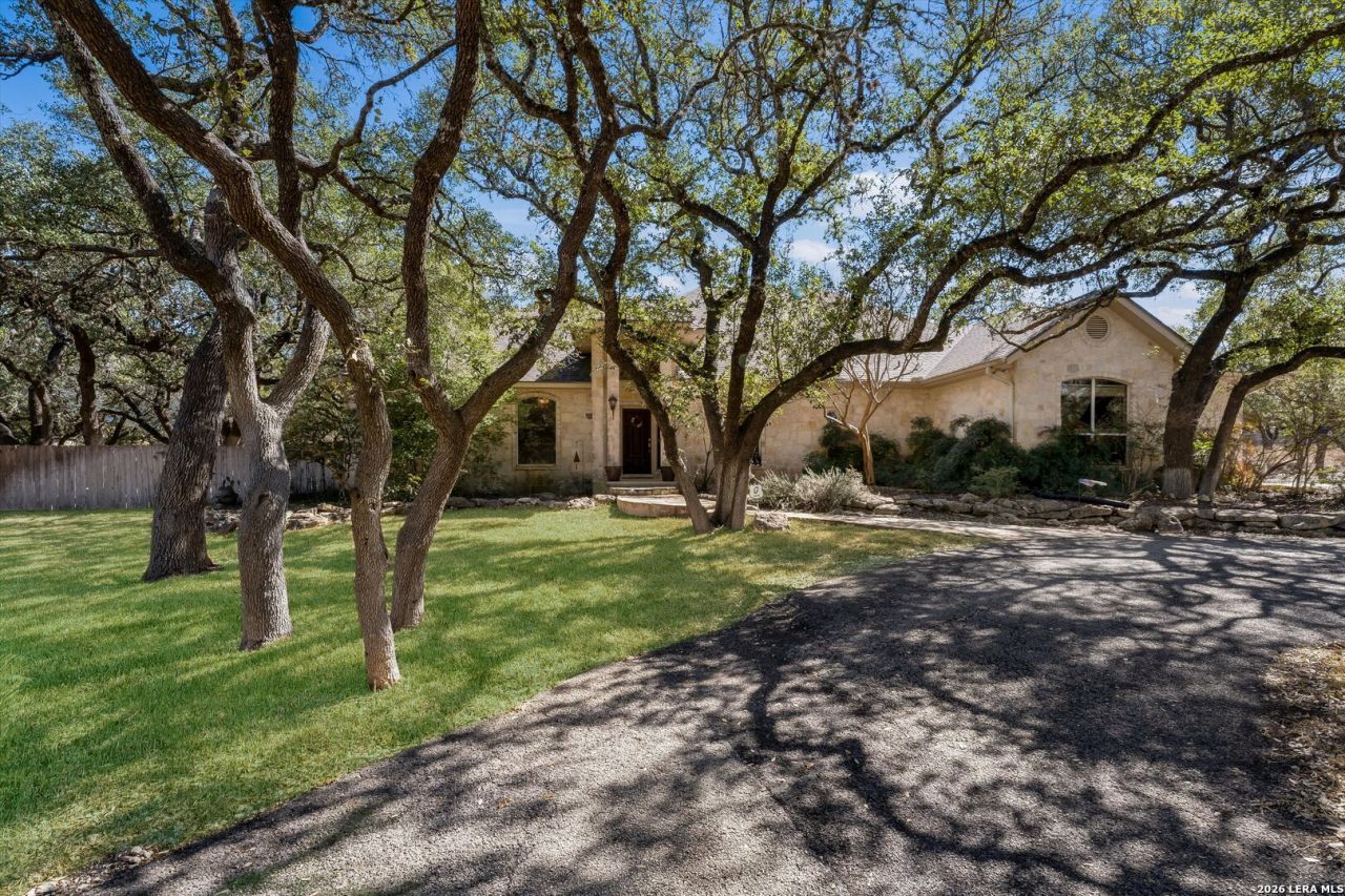 Set on three expansive acres with no HOA, this exceptional property offers privacy, flexibility, and thoughtfully designed living spaces throughout. The custom, single-story main home features four spacious bedrooms and an open layout ideal for both everyday living and entertaining. At the heart of the home is a large chefs kitchen, complete with an oversized island, ample cabinetry, and generous prep space-perfect for gatherings big or small. A dedicated office with built-in cabinetry provides a quiet, organized workspace for remote work or creative pursuits. Designed with comfort and convenience in mind, the single-level layout offers easy living with seamless indoor-outdoor connection. Separate from the main residence, the two-bedroom guest house offers excellent privacy and versatility. The 1460 sq ft home includes a kitchenette, a large living room with high celings and beautiful beams and comfortable accommodations ideal for extended family, guests, or potential income opportunities. Outdoors, a sparkling pool anchors the property, creating a resort-style setting surrounded by wide-open space, large mature oak trees and endless possibilities-gardening, recreation, or simply enjoying the peaceful acreage. With no HOA restrictions, this property delivers the freedom to live, work, and entertain on your own terms in a truly special setting all while living close to town. Boerne ISD schools.