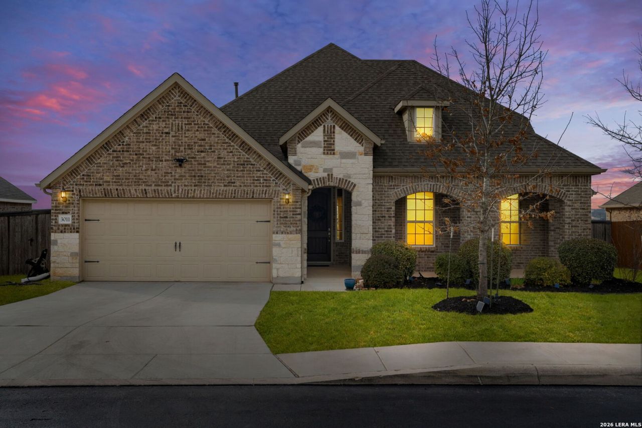 This 4-bedroom, 3-bath residence offers a thoughtfully designed layout with flexible living spaces. Just off the foyer, a private office overlooks the front yard, creating a bright and functional workspace. The foyer then opens into a spacious living room where windows frame views of the backyard and bring in natural light. An open-concept dining area connects seamlessly to the kitchen, which features an eat-in island and a walk-in pantry for added storage. A second office off the kitchen includes interior cut-outs that maintain connection to the living areas while providing separation for work or study. The primary suite is designed to capture light with four windows spanning the wall, creating expansive views and an airy feel. The ensuite bath includes dual vanities, a soaking tub, a separate standing shower, and a large walk-in closet. Upstairs, a second living space adds versatility, while secondary bedrooms are well-sized, with two offering walk-in closets. Outdoors, a sizable covered patio that overlooks the lawn, and the amazing breathtaking 360 views of the rolling hills. The patio has plenty of space to offer with room to relax or gather. Situated in San Antonio with convenient access to nearby amenities, this home combines space and functionality. Schedule your private showing to experience 3011 Bright Skies firsthand. OPEN HOUSE Sunday March 1 from 12 pm to 2 pm.