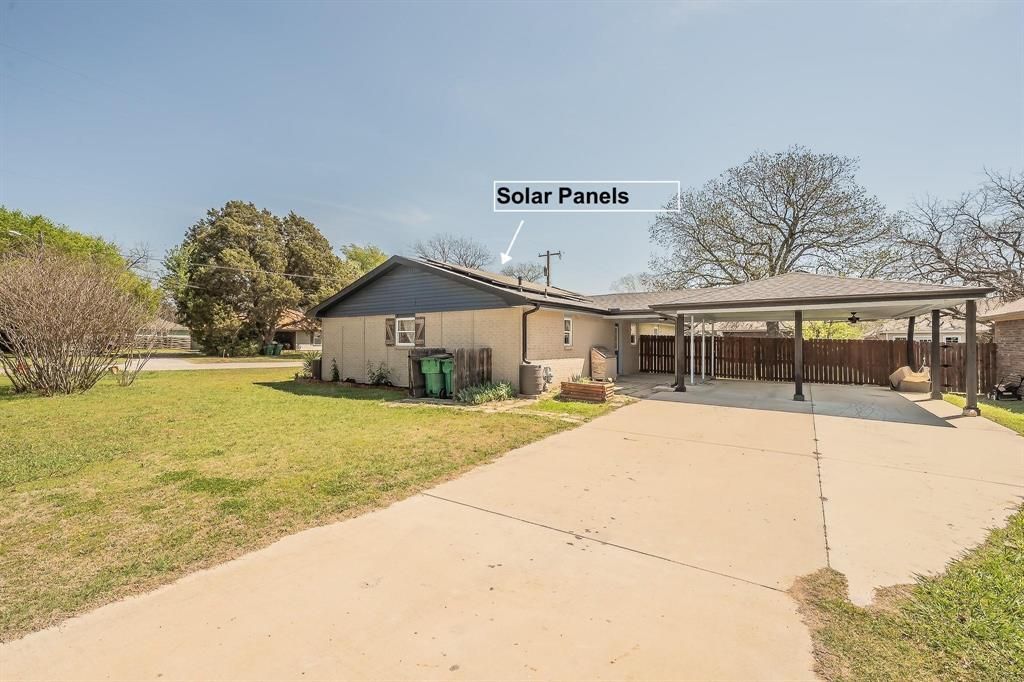 Seller concessions available. Move-in ready 4 bed, 2 bath home with a functional layout and major updates, including a new roof and gutters (2025). Energy-efficient features—solar panels, radiant barrier, and added insulation—help keep utility costs low. Interior was remodeled in 2017 with granite countertops and updated finishes, offering a modern, clean feel throughout. Spacious living and dining areas provide flexibility for a home office, guests, or a growing household. Fully fenced backyard ideal for pets, play, or entertaining, with mature pecan trees and perennial landscaping. Storage shed included for tools and extra space. Two-car attached carport and fresh exterior paint enhance curb appeal.