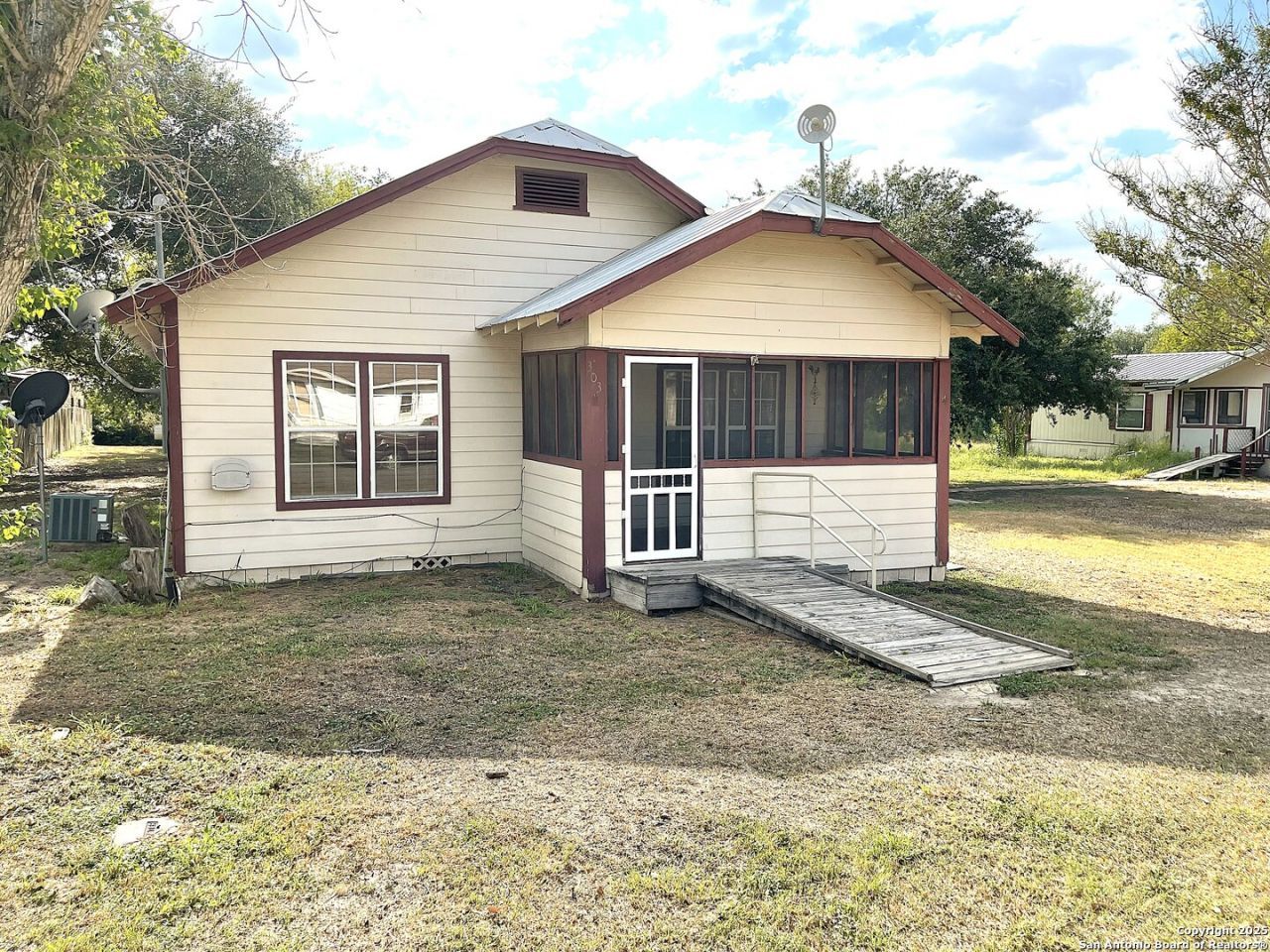 Are you ready for a small town life close to city conveniences??? Here is an attractive and move-in-ready home recently painted, brand new water heater, recently replumbed, with brand new breaker box and all new breakers, and central air and heating. It is located in the small friendly town of Pettus Texas, sixteen miles North of Beeville,Tx, only an hour South of San Antonio, TX, and less than an hour and half from the South Texas Padre Island Gulf Coast Beach and Corpus Christi, TX. The home has a metal roof and is located on a spacious .34 Acre lot. It has a convenient front porch ramp and is wheelchair accessible. There is also both a side and back entrance to the home. The spacious kitchen features white countertops with nice cabinet space and a seated breakfast bar. There are 3 bedrooms and 2 bathrooms. One of the bathrooms has a jack and jill design with a shower tub combination and the other is a walk-in shower. There is a hugely spacious laundry room with two long double hanging bars and lots of storage. There is an overly spacious room designated as a utility/pantry room with a nice window for natural light, with space enough to set-up a quiet office area or to put a treadmill or workout bench. A very nice two story Morgan Building (nearly brand new) can be found in the large backyard. The spacious yard is quite inviting with nice shade trees and plenty of room for a playscape or swimming pool and there is an electrical pole in the back yard to provide for a pool pump and/or additional yard lighting. This home is within a very short walking distance of the local schools and the town is full of wonderful families that have lived their entire lives in the area. Call us for a complete tour of this home and community.; Original MLS#: 113271; Deed Restrictions: ; Features: Porch-Covered; Home Warranty: No; Land Dimensions: .34; Land Size Apx: .34; Water District: No; Water Heater: Electric; Water Heater Gal: 40; Windows: Aluminum; Zoning: Residential