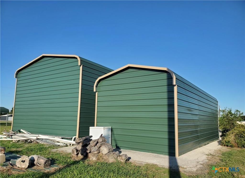 Interior lot with paved driveway access & city water/sewer & elec. on site in alley, BUT: structures on this lot have have underground electric from adjoining lots 1,2. Buyer will have to install services from water/sewer taps to structures, and service pole for electric to structures at Buyer's expense. All metal 2017 built 600sqft empty, ready to convert to whatever makes you happy! and det. carport, which has 2nd room. Location is minutes to City Harbor boatramp, lighted public fishing pier, park & walking trail. Units built to windstorm regs.