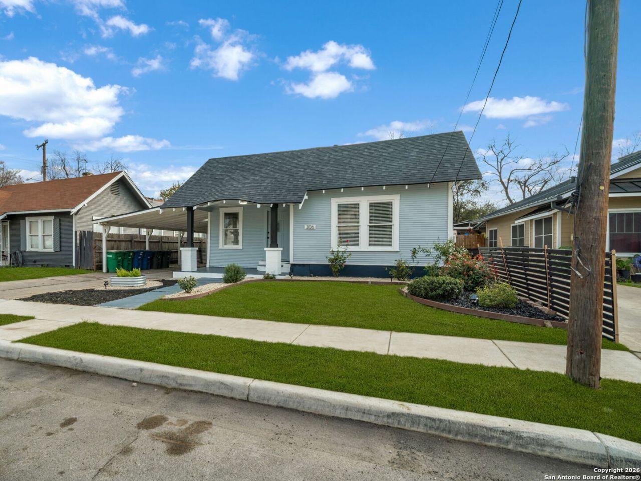 Welcome to this charming 1940s Craftsman-style home in the heart of Palm Heights, where timeless character meets incredible opportunity. Brimming with original charm, the main residence features three bedrooms and one beautifully updated bathroom with a striking walk-in shower. One bedroom offers flexible use as a second living area or home office, while large windows throughout fill the home with natural light and warmth. Adding exceptional value is the detached secondary dwelling at the rear of the property, offering two bedrooms, one bathroom, a unique and generously sized living/dining area, and its own laundry hookups, (washer and dryer included). This versatile space is ideal for multigenerational living, a private casita, a creative or startup workspace, or an income-producing rental or Airbnb. The property also offers the potential to function as two separate short or long-term rentals. The two homes are connected by a charming courtyard featuring a recently installed pergola, offering endless possibilities for outdoor living and future value. Enjoy close proximity to the Historic Pearl, Southtown, Hemisfair Plaza, Mission Concepcion, the San Antonio River Hike and Bike Trail, and the Palm Heights Community Center and Park. Set within a historic neighborhood surrounded by beloved local businesses, this location blends community, culture, and convenience. Both homes are truly move-in ready and feature a new roof, new water heater, newer HVAC system (approximately three years old), new fencing, updated kitchen cabinets and appliances, updated bathrooms and fresh paint throughout. A rare two-home opportunity offering charm, flexibility, and strong long-term value - priced to sell and ready to be enjoyed! Schedule your private tour today!!