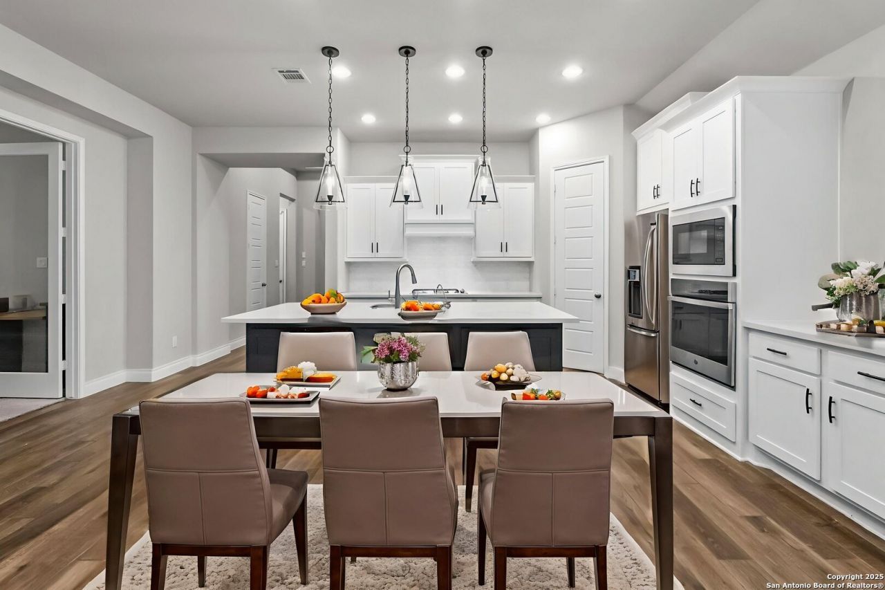Welcome to 3136 Coral Way, an immaculate Perry Homes build (2022) located in the highly sought-after Village of Mill Creek community within Navarro ISD. This beautifully maintained 4-bedroom, 3-bathroom, 2,443 sq ft home offers modern design, upgraded finishes, and an ideal location just minutes from both New Braunfels and Seguin, with quick access to shopping, dining, parks, and commuter routes. Step inside to an open-concept floorplan filled with natural light, featuring a versatile Bonus Room/Flex Space perfect for a home office, playroom, media room, or guest retreat. The bright, modern chefs kitchen includes a gas cooktop, built-in oven and microwave, sleek white cabinetry, and polished counters-flowing seamlessly into the spacious living room with a cozy gas-log fireplace. The luxurious primary suite is designed for relaxation, complete with dual walk-in closets, a large soaking tub, separate vanities, and an oversized walk-in shower. Additional upgrades include a reverse osmosis system, water softener, and an extended covered back patio-ideal for outdoor dining, entertaining, or unwinding after a long day. This home has been lightly lived in, exceptionally cared for, and shows like new. Sellers are also including a 1-year Home Service Contract, providing added comfort and peace of mind. Dont miss your opportunity to own a like-new Perry Home in one of Seguins most desirable neighborhoods. Schedule your showing today-this one is sure to impress!