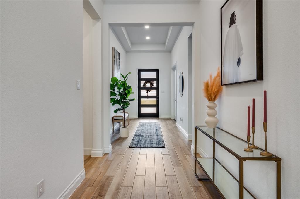 Discover 317 Foxthorne Way, a beautifully designed home located in Prairie Oaks, one of the Dallas area’s most exciting master-planned communities. Set in the lakeside town of Little Elm, Prairie Oaks offers a resort-style lifestyle with a sparkling community pool, neighborhood parks, scenic green spaces, and miles of nature trails winding through mature, tree-lined terrain. You’re also just minutes from Lake Lewisville’s sandy beach, fishing coves, boat ramps, and waterfront dining, making weekend fun effortless. With quick access to FM 720, HWY 380, and the Dallas North Tollway, you’re close to everyday conveniences in Little Elm, Frisco, and Denton. Students attend the highly rated Denton ISD.The home itself is equally impressive. Step inside to an inviting, light-filled layout with tall ceilings, warm floors, and a private study enclosed with French doors. The open-concept living area features large windows overlooking the backyard and flows seamlessly into a modern kitchen with stainless appliances, a gas cooktop, quartz countertops, and an oversized island perfect for gathering.The spacious primary suite includes a luxurious ensuite bath with dual vanities, a soaking tub, separate shower, and generous walk-in closet. Additional bedrooms are thoughtfully positioned for privacy, and the home includes multiple full baths, a dedicated laundry room, and abundant storage.Outside, enjoy a covered patio and a fully fenced backyard with plenty of room to play, relax, or entertain. This home combines modern comfort with incredible community amenities—an ideal choice for anyone seeking beauty, convenience, and a vibrant lifestyle.