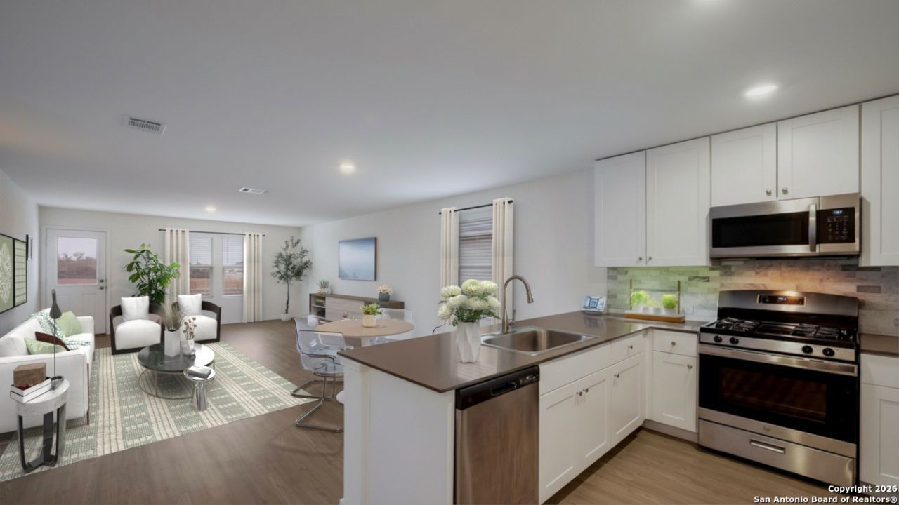 This affordable and energy-efficient home located in the desirable Hidden Trails community off Hwy 281 in Bulverde near the Johnson Ranch area. This well-designed home offers 3 bedrooms, 2 full baths, and over 1,400 square feet with a bright open layout perfect for everyday living. The kitchen flows easily into the living and dining areas, making it a great space for gathering with family and friends. Recent updates include a new backsplash and upgraded faucet. One of the standout features is the solar panel system that will be paid off at closing, helping keep electric bills around $50 per month, even during Texas summers. The garage also includes an electric vehicle charger. Conveniently located near San Antonio, Spring Branch, Canyon Lake, and New Braunfels.