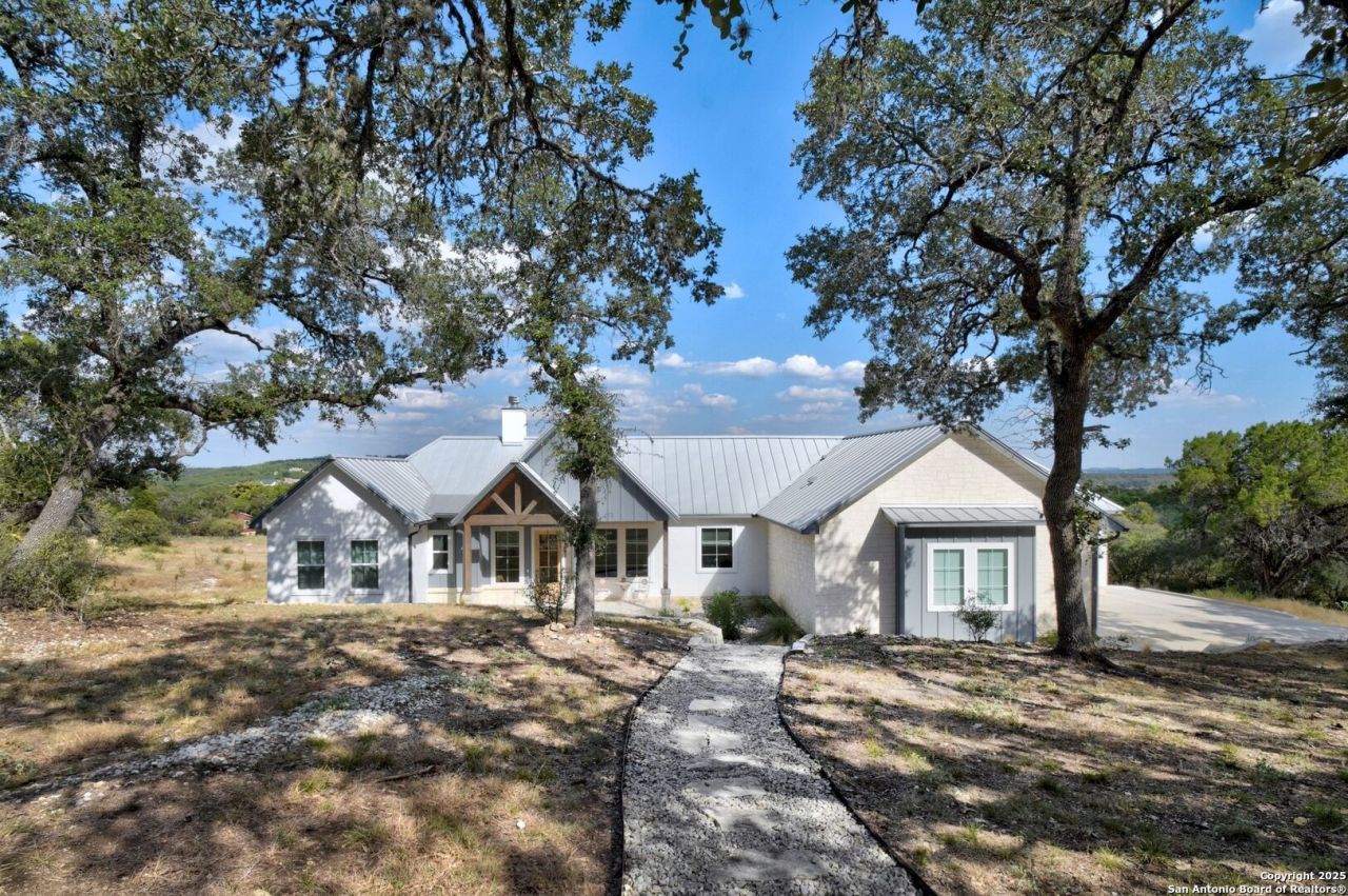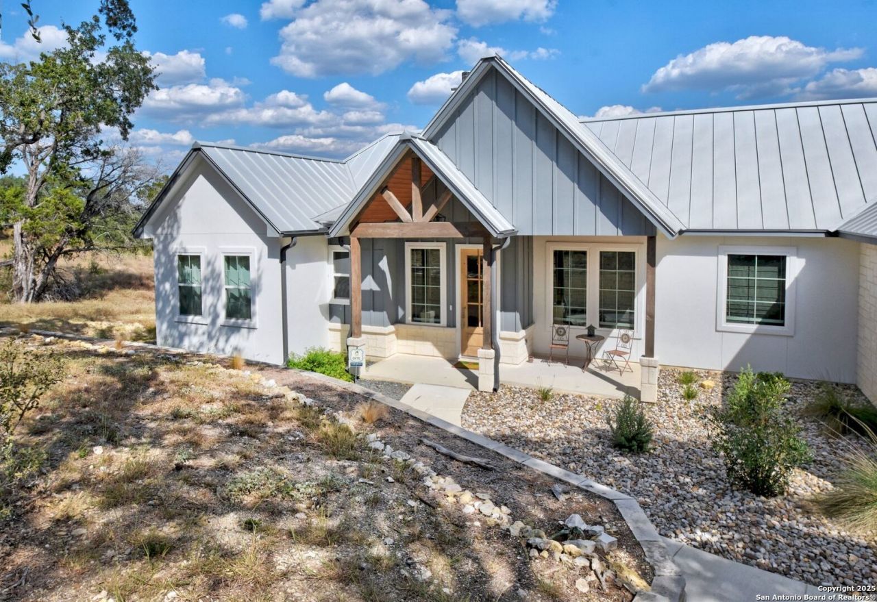 Step into this warm and welcoming 2,052-square-foot custom home by Lifestyle by Stadler, built in 2021 with timeless Hill Country style. From the moment you arrive, youll feel the charm of a thoughtfully crafted retreat nestled on a one acre property inside a gated community with its own pavilion-perfect for gathering with neighbors and friends. Inside, oversized wood beams span the living room ceiling, adding instant character and that sense of "home" youve been looking for. A wood-burning fireplace anchors the space, while large windows frame sweeping Hill Country views and bathe the room in natural light. With three spacious bedrooms, two and a half baths, and a designated office, theres room for everyone to work, play, and unwind. The heart of the home flows seamlessly to an oversized back porch where youll watch the sunrise stretch across the hills-an ideal spot for slow mornings with coffee or evenings spent with friends. Every detail of this move-in-ready home has been designed to blend comfort with craftsmanship, creating a place where memories are made and life feels a little simpler. Come experience the Hill Country life youve been dreaming of-right here, waiting for you.