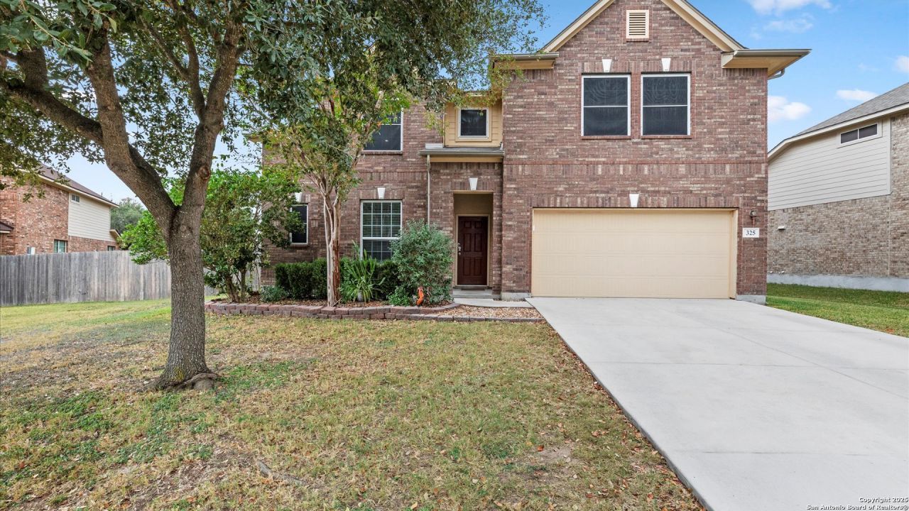 NEW Roof will be installed before closing + $3000 in closing costs from sellers. Spacious 3,273 sq. ft. two-story home nestled on a generous .266-acre partial cul-de-sac lot in desirable Bentwood Ranch in Cibolo, Texas. Designed with comfort and versatility in mind, this home offers an open layout, with five bedrooms, including a first floor primary suite, three-and-a-half baths, and multiple flexible living spaces. Step inside and youre greeted by a formal dining room, and the large island kitchen with abundant cabinetry, expansive counter space, double ovens, stainless steel appliances, and a smooth cooktop-ideal for preparing everyday meals or hosting a crowd. The butlers pantry, which conveniently connects the two rooms, adds extra storage and a practical flow that makes daily routines easier. The large living room is open to the kitchen and breakfast area, and overlooks the expansive backyard. Additional living spaces upstairs are a cozy loft flex space and a very spacious family/game/media room that offers even more possibilities, like movie nights, gaming, crafting, or even converting it into a 6th bedroom if needed. The downstairs primary suite provides a peaceful retreat with a charming bay window and an en suite bath featuring a walk-in closet, double vanity, and a separate garden tub and shower. Its the kind of space that feels relaxing at the end of a long day. The four secondary bedrooms and two additional full bathrooms are upstairs, giving everyone plenty of space and privacy. Additional enhancements include solar screens, a full yard sprinkler system, gutters, and a rear covered patio for outdoor relaxation. Sitting on just over a quarter-acre, this home offers ample parking thanks to an extended driveway and generous curb space-a rare convenience in a cul-de-sac setting. The location is another standout. Youre within the highly regarded Schertz-Cibolo-Universal City ISD, and close to shopping, restaurants, schools, entertainment, and major highways, plus youre situated between San Antonio and Austin. Everything you need is just minutes away, making everyday living and commuting easy and convenient.