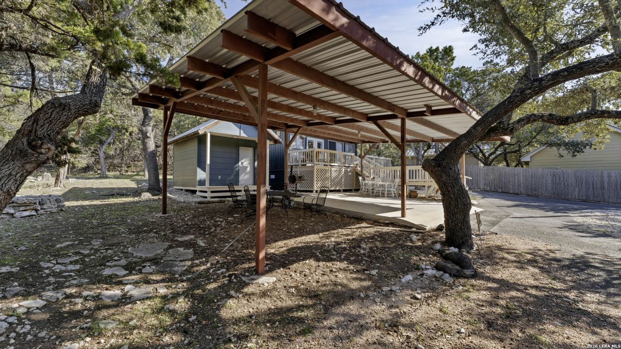 326 Cedar Dr is a one-of-a-kind Hill Country property with character, history, and incredible potential just minutes from beautiful Canyon Lake. This classic rustic home in the Canyon Lake subdivision provides the perfect vacation-like environment. It offers a blend of tranquillity and recreational opportunities. Activities include water sports, golfing, and amenities such as a well-maintained swimming pool, shaded areas, and private waterfront parks that feature seasonal boat ramps and picnic areas. The property has plenty of parking areas with a circular driveway. There is an extra parking space and a 20X20 carport for 2 vehicles. An open-concept kitchen and dining area with a gorgeous handmade 8-foot cedar-topped bar adds a distinctive touch. The primary bedroom features contemporary high ceilings and a large closet. A cozy wood-burning stove provides a warm, inviting atmosphere. This house has a spacious front porch with excellent views. Set on a peaceful 0.23-acre lot with mature trees, its the perfect spot for relaxing, entertaining, or enjoying the lake lifestyle.