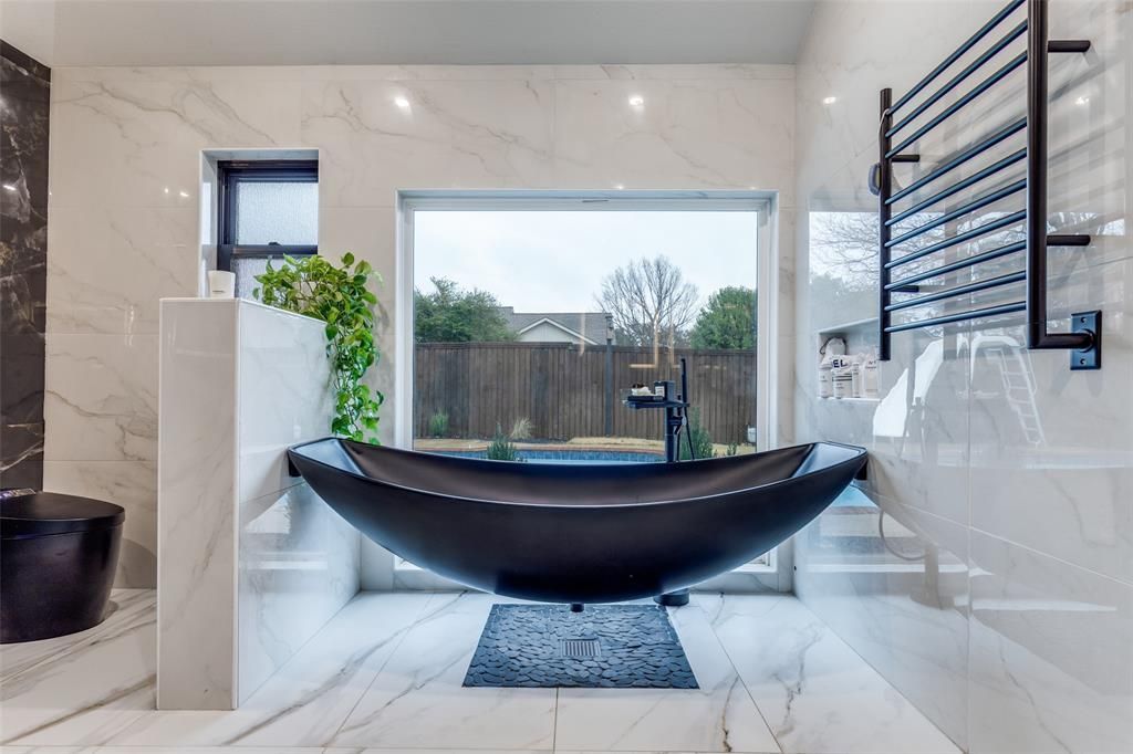 Exceptional fully rebuilt single-story home in sought-after Plano ISD. This U-shaped modern,designer-built residence(NOT A FLIP PROPERTY) offers a bright & open floor plan designed for comfortable living and entertaining, featuring a private pool and multiple living areas. The home was taken to the studs and completely rebuilt, with extensive upgrades including a new roof,full electrical system and panel,upscale fully dimmable LED ceiling light system,new attic and wall R49 insulation,new skylights,new flooring,new windows,sliding doors,a custom pivot entry door,European built-in closets,a custom built-in pantry,and fully renovated bathrooms throughout.Home features a totally brand-new,high-end kitchen with European cabinetry with LED,an oversized 13 feet leather Taj Mahal quartzite island and countertops and full backsplashes, premium ZLINE appliances,and a striking glass-enclosed built-in wine display connecting to the second living area.Custom pantry is equally well-appointed,offering leather Taj Mahal quartzite countertops and a built-in full-size washer and dryer for seamless functionality and design continuity.Primary suite includes a spa-style bathroom,floor to ceiling tiles, floating vanities,a jetted shower system,and a unique hammock style floating soaking tub overlooking the pool through a large and custom-made picture window.Each secondary bedroom offers a private ensuite bathroom with floating vanities, including one with a jetted jacuzzi tub. All bathrooms are floor to ceiling oversized porcelain tiles and are equipped with modern smart toilets. Outdoor upgrades include a new French drain, covered patio with a misting system,freshly stained fencing, upgraded sprinkler system,updated pool equipment and a storage Shed.This turn-key property combines thoughtful, modern, contemporary design with first class materials, quality craftsmanship, and a prime location in one of Plano’s most desirable school districts. A must-see opportunity sure to move quickly.