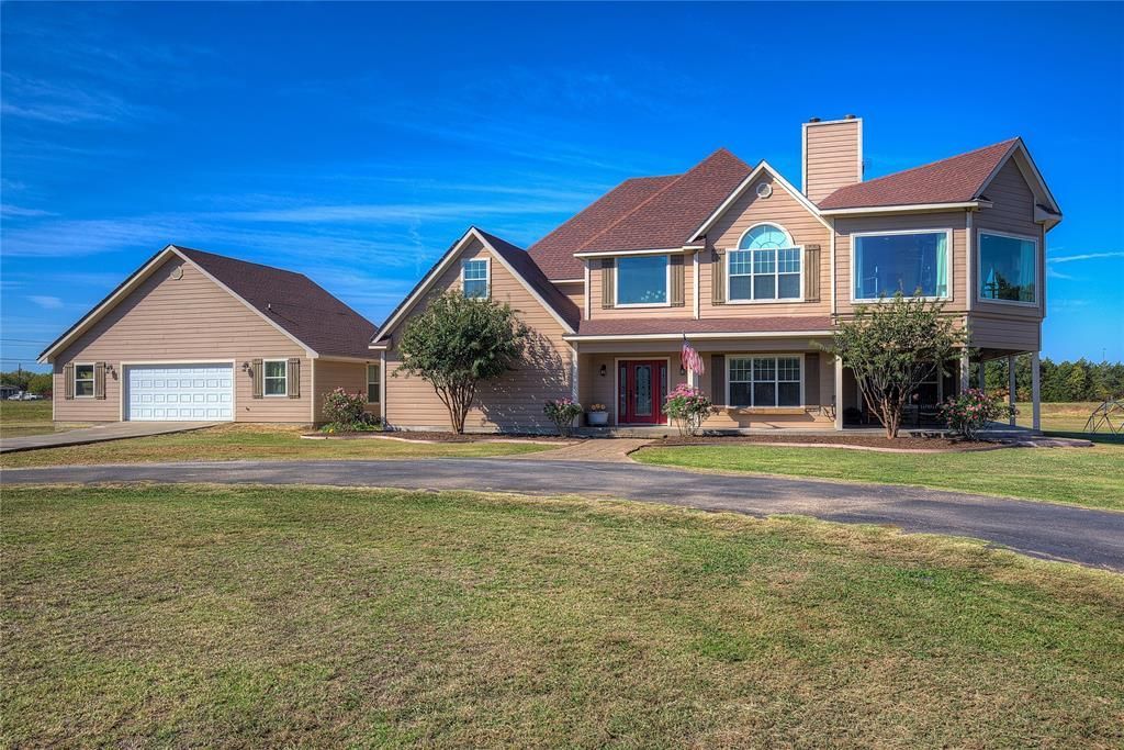 Conveniently located within 10 minutes of EastTexas A&M Commerce you’ll discover serene rural living at 347 County Road 4736, Cumby, TX. This expansive custom built 5-bedroom, 3.5-bathroom home spans 4,350 square feet and sits on a vast 14.4-acre lot. Enjoy modern amenities like a granite-topped island kitchen, cozy fireplaces, and a luxurious primary ensuite. With solar panels, well water, and all-electric systems, off-the-grid possibilities abound. Be sure to ask about the safe room before you visit! Sellers are be open to idea of subdividing and selling the home with less acreage. Home must be purchased with the land, no land only sale.