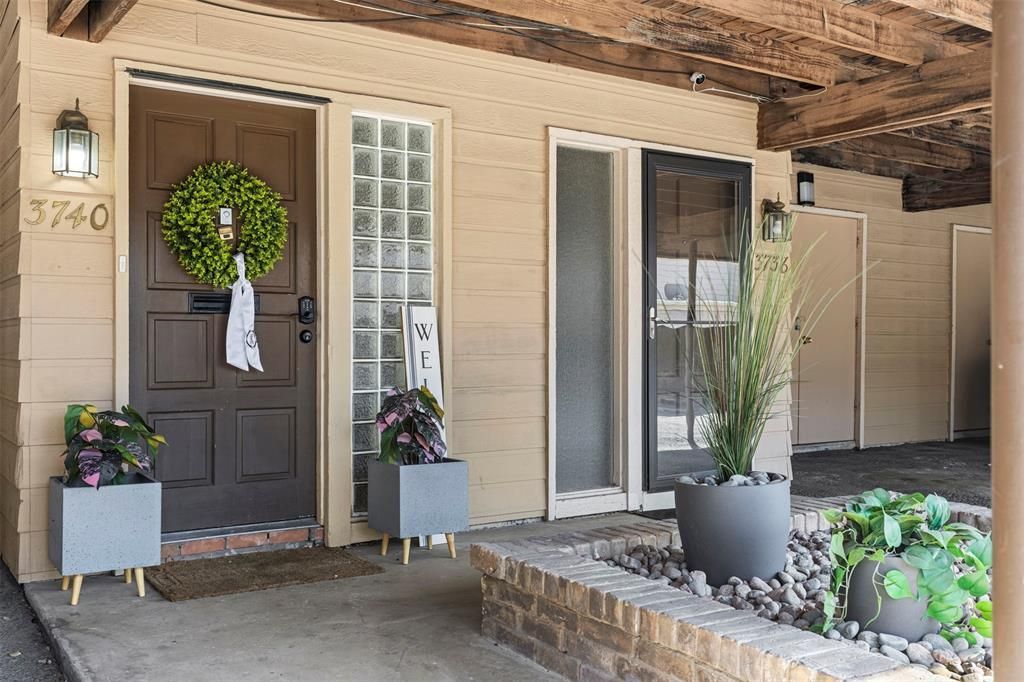Discover this light, bright, and open 2-bedroom condo with a study nestled in the heart of Addison, just a short walk to the scenic trails and vibrant events of Vitruvian Park and within quick reach of the recreational amenities at the Addison Athletic Club. Enjoy close proximity to pickleball courts, basketball courts, walking paths, and the dining and entertainment of Addison Circle, with the prestigious Brookhaven Country Club just minutes away. The condo features covered parking with an attached storage area directly in front of the unit for added convenience. Inside, a welcoming entryway opens to a spacious living room highlighted by a cozy fireplace, built-ins, and wood-look tile flooring throughout the main level. The updated kitchen is a standout, complete with a gas range, quartz-topped island with eat-at bar, and ample cabinetry, perfect for cooking and entertaining. A dedicated laundry room, generous walk-in closets, and fresh 2025 interior paint enhance everyday comfort. The large secondary bedroom offers an en-suite bath, making it an ideal second primary suite. Additional efficiency upgrades include updated HVAC & windows. Step outside to a large private patio with a board-on-board fence that opens directly to a dog park and community courtyard. The home is just steps from the community pool and clubhouse, offering relaxation and recreation right at your doorstep. HOA dues include select utilities (water, sewer, gas), pest control, blanket insurance, and common-area maintenance for a low-maintenance lifestyle. This beautifully updated condo combines walkability, convenience, and comfort in one of Addison’s most desirable locations, perfect for those seeking an active yet relaxed lifestyle.