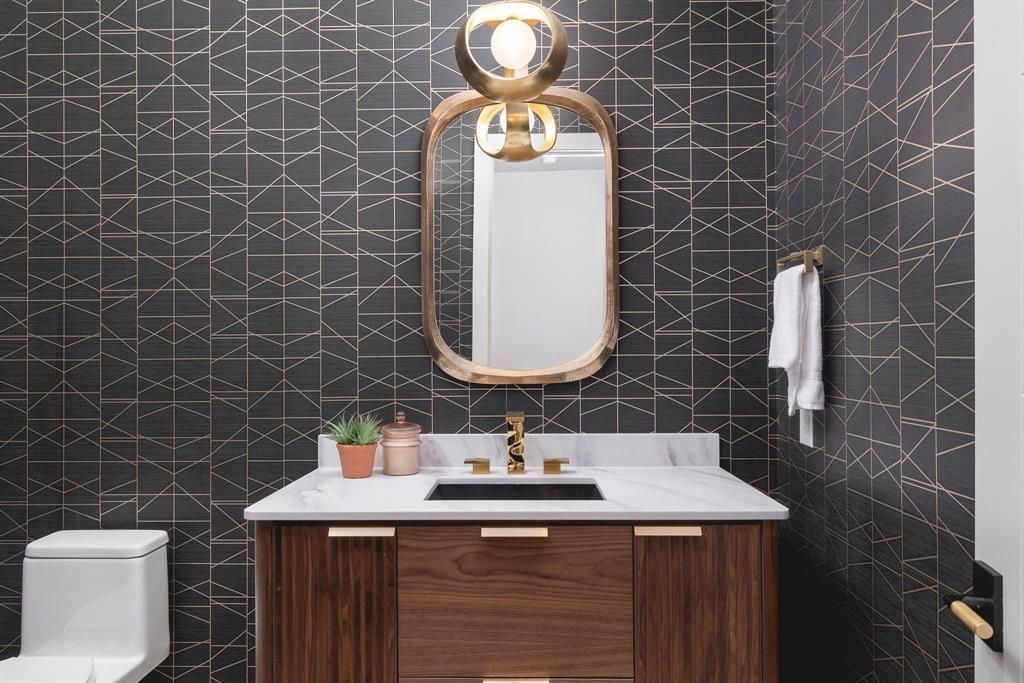 3950 Rochelle Dr., Dallas. New construction by award winning third generation builder, Chris Sandlin Homes, this warm modern residence pairs striking curb appeal with luminous, design forward interiors. A brick facade with black metal accents, dramatic up lighting and oversized steel black windows frames a wide drive and two car garage beneath a magnificent shade tree. Inside, a glassy front office overlooks the street, and a chic powder bath showcases geometric wallcovering, brass lighting and a marble topped vanity. The chef’s kitchen is a showpiece with ceiling height custom walnut cabinetry, a glass front display hutch, professional built in refrigerator and gas range, and a massive waterfall island in marble look stone with seating for five under sculptural pendants. A walk in pantry and an adjoining scullery and butler’s area add a sink, open shelving and a beverage fridge. The dining area is wrapped in floor to ceiling windows, while the great room centers on a dramatic book matched slab marble fireplace flanked by walnut cabinetry and floating shelves. Slide outdoors to a covered living porch fully outfitted for entertaining with a brick fireplace, built in grill, sink and under counter refrigerator, all overlooking a private, fenced yard. The first floor primary suite features a tray ceiling and restful views, its spa bath offers dual furniture style vanities with brass fixtures, pendant lighting, a freestanding soaking tub set in a blue tiled niche, an oversized shower and terrazzo style floors, plus a custom closet with extensive built ins and a center island. Upstairs, a generous game room includes a sleek wet bar with sink, mirrored tile backsplash and beverage refrigerator, perfect for movie nights. Five total bedrooms and 5.5 baths provide ensuite comfort for family and guests. Thoughtful finishes include wide plank light oak floors, designer lighting, black fans and brass hardware, completing this refined, move in ready home.