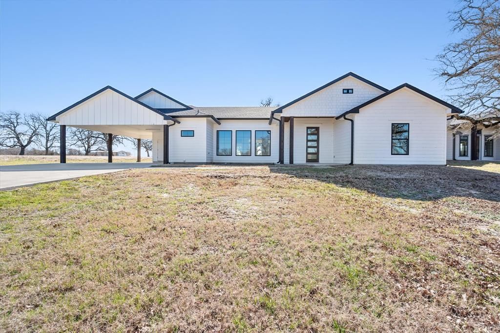 Experience affordable lakeside living at Richland Chambers Lake! This gorgeous new construction home in Rustling Oaks Estates is a must-see! Thoughtfully designed to blend elegance with functionality, every detail has been carefully crafted. From the moment you walk in, you'll be welcomed by a fresh, contemporary aesthetic. Expansive bay windows, stylish vinyl plank flooring, and custom trim add character and charm. The open-concept layout creates an effortless flow between the living and dining areas, making it perfect for entertaining. At the heart of the home, the kitchen shines with sleek granite countertops and crisp cabinetry. Primary suite has spa-like ensuite bath with double vanity and large walk in closet. Each additional bedroom has walk in closet and access to full hall bath. Laundry room provides ample space with storage. Nestled in a peaceful setting at Richland Chambers Lake where you will can enjoy fishing and boating or just sitting on your back patio and watching the deer. Rustling Oaks Estates is a stunning lakeside subdivision with community boat ramp and fishing dock. Whether you are looking for a lakeside weekend home or want to embrace the lake life full time you don't want to miss your chance to call this stunning home yours—schedule a visit today!