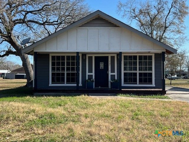 Welcome to this charming craftsman-style cottage located in the quaint town of Edna. This delightful home features three bedrooms and two bathrooms, over 1700 square feet providing ample space for comfortable living. The huge primary bedroom offers enough room for a sitting room or office , perfect for relaxation or reading. This all electric home features nice size kitchen with breakfast bar plus 2 dining areas that are perfect for hosting family gatherings, large indoor utility room and cute covered front porch for relaxing. This home could qualify for USDA home loan.