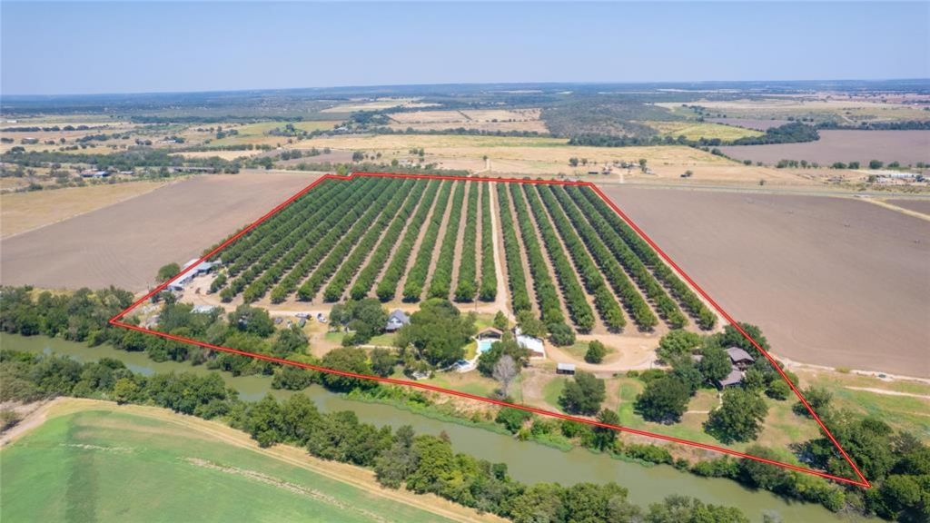 Rare San Saba River offering in the heart of the Pecan Capital. This property features a 3,047± sq ft main home built in 1999 with 4 bedrooms, 2.5 baths, large kitchen and dining space, two living areas, and a dedicated office. The residence is set at the back of a producing pecan orchard and overlooks San Saba River frontage. Amenities include an inground pool with hot tub, pool house, and a Generac generator capable of servicing both the main home and the venue.A second residence, currently used as a venue, offers 3 bedrooms, 3 baths, a commercial kitchen with walk-in cooler, outdoor bathrooms, and a covered patio. Venue equipment conveys with the sale.This rare property combines agricultural, recreational, and event-use potential with opportunities for fishing, kayaking, hunting, and more.