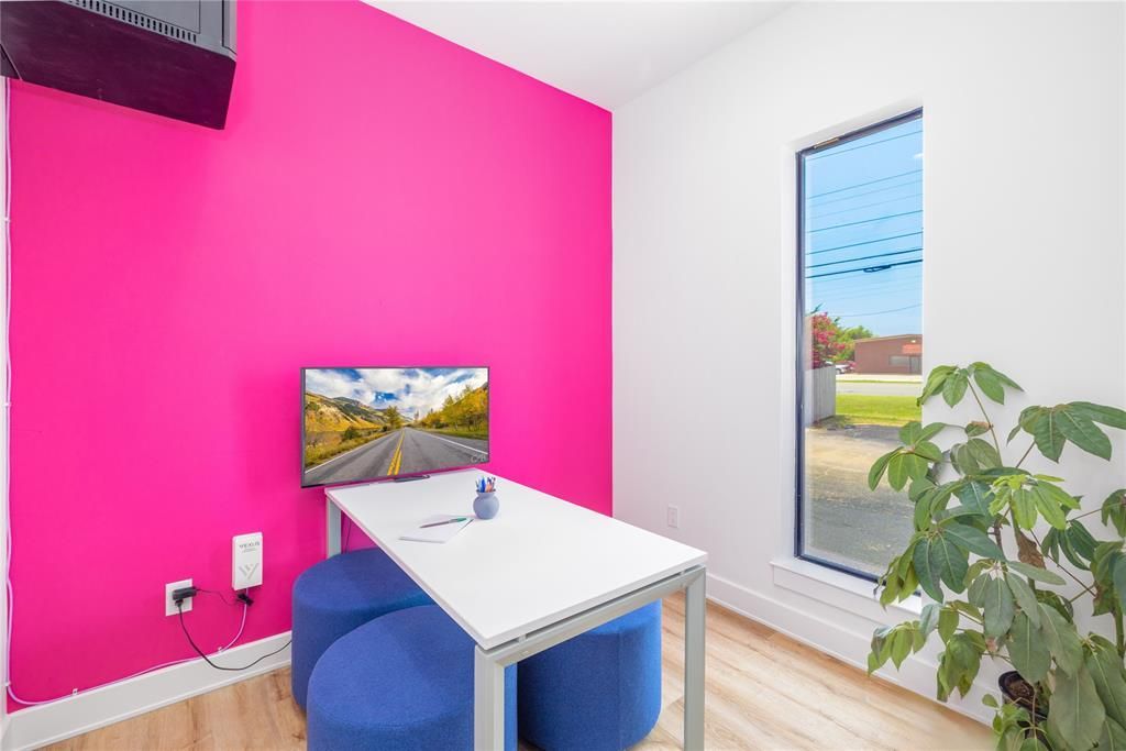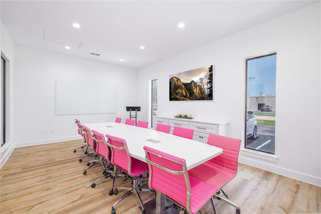 Owner Agent. Discover a stunning office building designed for productivity and comfort. This thoughtfully designed workspace features two spacious office suites, complemented by five private offices (11x13 each), perfect for a growing team or multiple businesses. A large common area with surround sound creates a welcoming environment for collaboration and client interactions, extending seamlessly to a covered outdoor patio with views of a tranquil creek and mature trees. A dedicated conference room ensures privacy for meetings, while a professional reception area sets the tone for your business. Additional features include three bathrooms, a full kitchen, and modern finishes throughout. The building is equipped with three HVAC systems for personalized climate control. With an abundance of natural light and a seamless indoor-outdoor flow, this office space is a rare opportunity to work in style and serenity.