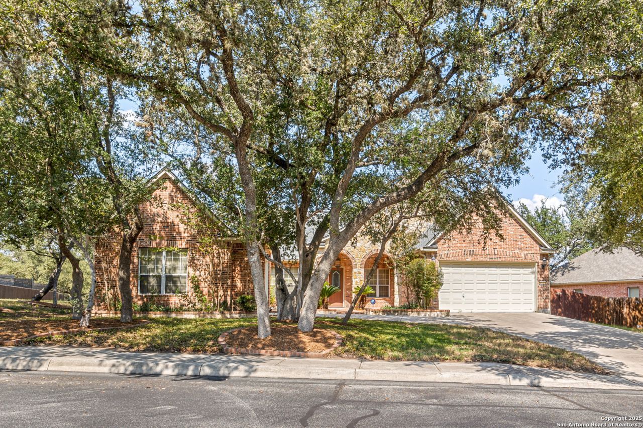 Located in the gated community of Alamo Ranch, this 4-bedroom, 3-bath home sits on a quiet cul-de-sac lot and offers a comfortable layout suited for everyday living. The open floor plan connects the living room and kitchen, creating an easy space for gathering. The living area features a fireplace and built-in cabinetry, while the kitchen includes granite countertops, 42" cabinets, stainless steel appliances, a gas cooktop, and a built-in desk. The primary suite offers generous natural light and high ceilings, giving the room a bright and open feel. It includes an ensuite bath with a soaking tub, walk-in shower, double vanity, and a large walk-in closet. Three additional bedrooms provide plenty of space for family or guests. The backyard features a covered patio, a deck, a spacious yard, and mature trees-ideal for enjoying outdoor time. A new roof was installed in May 2025 for added peace of mind, and recently added new 6" gutters with a heavy metal mesh . Community amenities include controlled access, a swimming pool, a park/playground, and more. The home is also close to shopping, John Hoffman Elementary, Dolph Briscoe Middle School, parks, and offers easy access to Loop 1604 and Alamo Parkway. Dont miss the opportunity to make this your next home, book your personal tour today!
