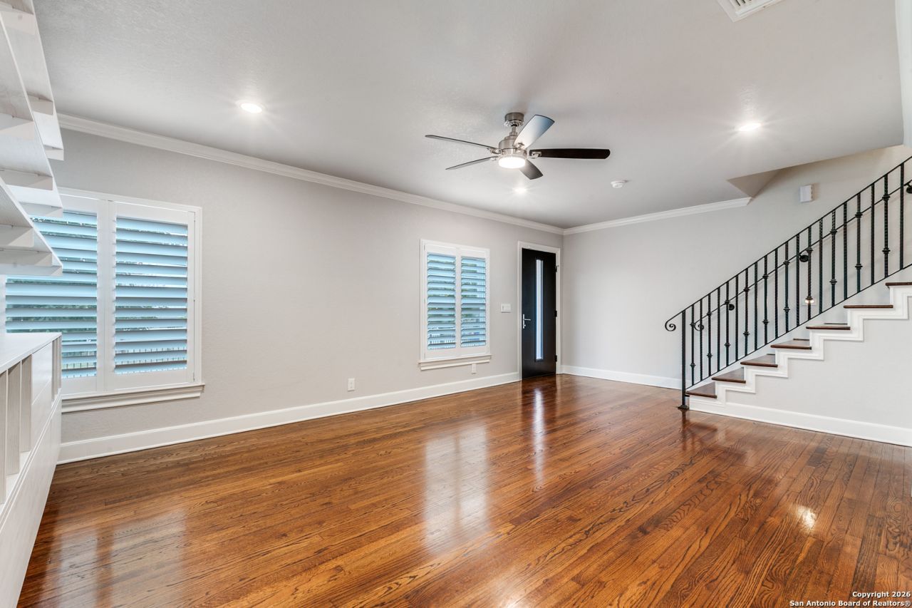 Beautiful 3-Bedroom, 1.5-Bathroom Triplex Unit in Fantastic Olmos Park Location. Walking Distance to Shopping & Restaurants at Olmos Park Circle, Minutes from Downtown, Airport, The Pearl, & More. Extensively Remodeled in 2020, Interior & Exterior, Handsome Curb Appeal & Unbeatable Location. Front Entry Opens to Spacious Living/Dining Space with Rich, Refinished Hardwood Flooring, Recessed Lighting, Plantation Shutters, & Neutral Paint Colors. Gorgeous Island Kitchen with Stainless Steel Appliances, New Cabinetry, & Granite Countertops. Stacked Washer/Dryer in Laundry Closet. Nicely-Sized Bedrooms with Hardwood Flooring & Ceiling Fans. Renovated Bathroom with Tub/Shower, Granite Vanity, & Designer Finishes. Rear Exit in Kitchen to Sidewalk Leading to Carport & Patio. Fenced/Gated Yard. Assigned Covered Carport Parking with Additional Storage Unit & Patio Area. No Pets Allowed. Alamo Heights ISD.