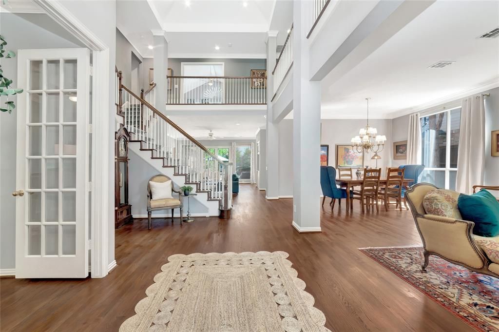 Excellent opportunity to own this thoughtfully updated home nestled in the prestigious Bent Tree North neighborhood located in the heart of N. Dallas. Offering an unbeatable blend of comfort, luxury+functionality, it features 5 beds, 4.5 baths, 3 living, office, TWO stunning primary suites, 3 car garage+pool! You’ll be charmed by the classic red-brick exterior+mature trees. Inside, the traditional style+on trend updates including timeless hardwood floors, elegant architectural details, large windows, extensive crown molding, fresh paint+so many special touches that are sure to impress. The generously sized, open kitchen is fully renovated w premium granite counters, top-of-the-line KitchenAid appliances including gas cooktop+double ovens. A large center island, walk-in pantry & built-in desk add to function. The expansive family room features a gas fireplace, recessed lighting & panoramic views of the private backyard retreat thru oversized windows & French doors. One of the home’s most unique features is the library w extensive built-in bookshelves, hidden storage & upgraded French doors that lead to a peaceful side patio w pergola. Downstairs, the 1st primary suite is a tranquil haven w soaring ceilings, arched windows & enough space for a sitting area+workspace. The luxury ensuite bath is fully renovated w a large walk-in shower, high-end granite & an oversized walk-in closet. Upstairs, discover the 2nd primary suite—equally impressive w vaulted ceilings, private balcony & a spa-like ensuite bath featuring a soaking tub, marble-style flooring+glass-enclosed walk-in shower. 3 additional beds+2 additional baths are also located upstairs. The extremely private backyard oasis is surrounded by lush landscaping & trees! The heated pool+spa is perfect for fun & relaxation. The 3 car garage is the cherry on top. Roof ('19), 5 Ton HVAC ('23), pool heater ('21). This incredible home truly has it all—space, style, upgrades & top notch location!