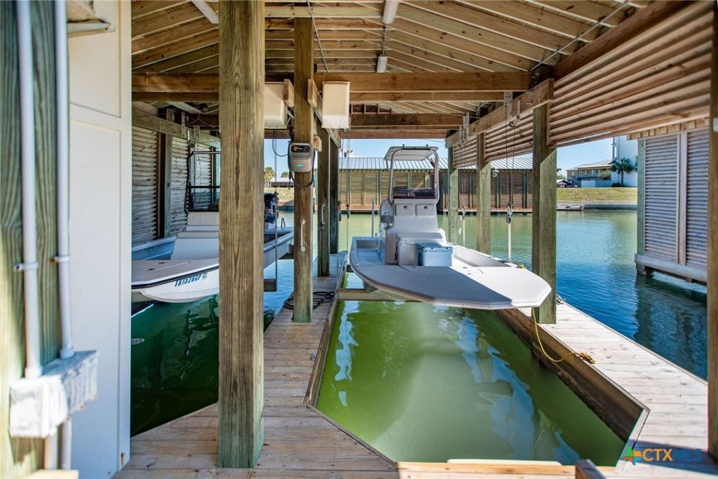 Masterfully designed 4 Bedroom, 4 Bath waterfront home in Caracol with two Boat Slings! (2017) Room for all, so the whole crew, is welcome! Large entry foyer is inviting and adjoins attached garage, convenient for loading and unloading summer gear. This summer fun home has four bedrooms and four full baths. Two bedroom guest quarters downstairs is complete w/Dbl. bunkbed room and a stately king bedroom w/built-in bunk bed, even a view of boat house! These two rooms and a full bath w/dbl vanity and walk in shower set your guests up for a comfortable stay. They even have their own private exit to back patio and boat house. Great for navigating those early am fishing trips! Wide, main floor staircase opens up to a bright, white living room w/ship-lap walls and cook's kitchen complete w/massive bar, tons of cabinet space, pantry and SS, built-in appliances! Utility/Laundry space upstairs, off kitchen, is convenient extra storage space. The airy living room has ship-lap accent walls, stacked shelves in staircase wall. These accents in the Living - kitchen spaces create an East Coast/Cape Cod fishing/beaching vibe with nautical kitchen - storage accents throughout house. Upstairs has a 2nd Master Bedroom overlooking Boat House and canal. 3rd guest bedroom upstairs w/guest bath. East facing covered deck, off living room, overlooks your own, private two-sling boat house! Locker for fishing gear and cleaning table ready to roll, in boathouse. There is a second staircase which runs from upper back deck down to patio area and boat house. The patio area works as a bridge between boat house and garage. Roll-up doors on front and back of garage smooths the way for summer breezes! East facing back patio area has room for BBQ Pits, dining area and a staircase to gain access to the downstairs king bedroom, our third staircase! Custom 4/4 home on water with Caracol amenities, including in-ground pool, patio area and volleyball court! All you need in POC!