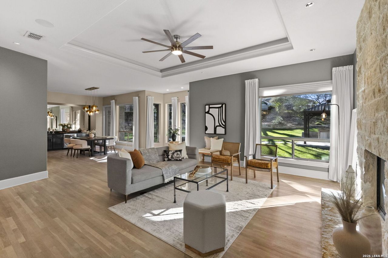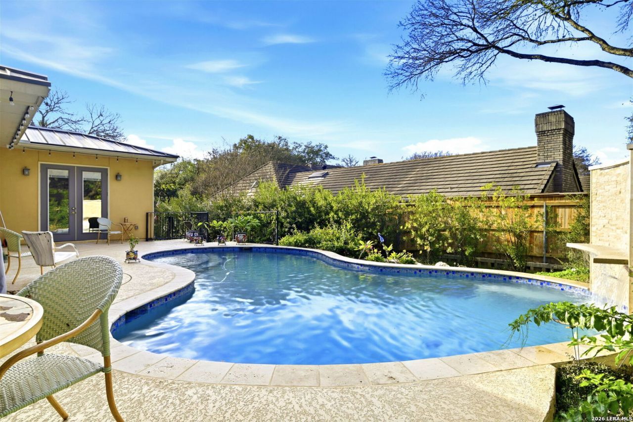 **DIVE IN!! Contemporary Custom Home in convenient Bluffview Estates has Backyard Swimming Pool**Over $100k in recent upgrades**Modern Light Wood FLoors & Travertine** Rock Fireplace**Upgraded Kitchen has European Flair**Painted Cabs**2-Sinks **Granite *SS gas appliances**Large Dining Space is Entertainers Delight with Butlers Bar & Mini-Fridge**Open Floorplan**Picture Windows overlook Oak-Studded Side-Yard w/outdoor Kitchen**WOWZA Owners Suite has it all!**Barreled Ceiling** Private Coffee Bar**Beautifully Tiled Shower, Whirlpool tub, Dreamy closet**Bonus Room can be Study/Office, Exercise Rm, Dressing Rm**AND Access to your sparkling In-Ground pool! **Water feature, Resurfacing, Heater** Sun Room Downstairs can be additional Living Rm**Upstairs 3 BR, 2 BA plus Game Room ** Great Storage Throughout** 3 Car-Garage plus Circular Driveway**Neighborhood sports courts**Convenient to SA Airport, Downtown & Major Highways**Unique and beautiful! You Summer awaits!