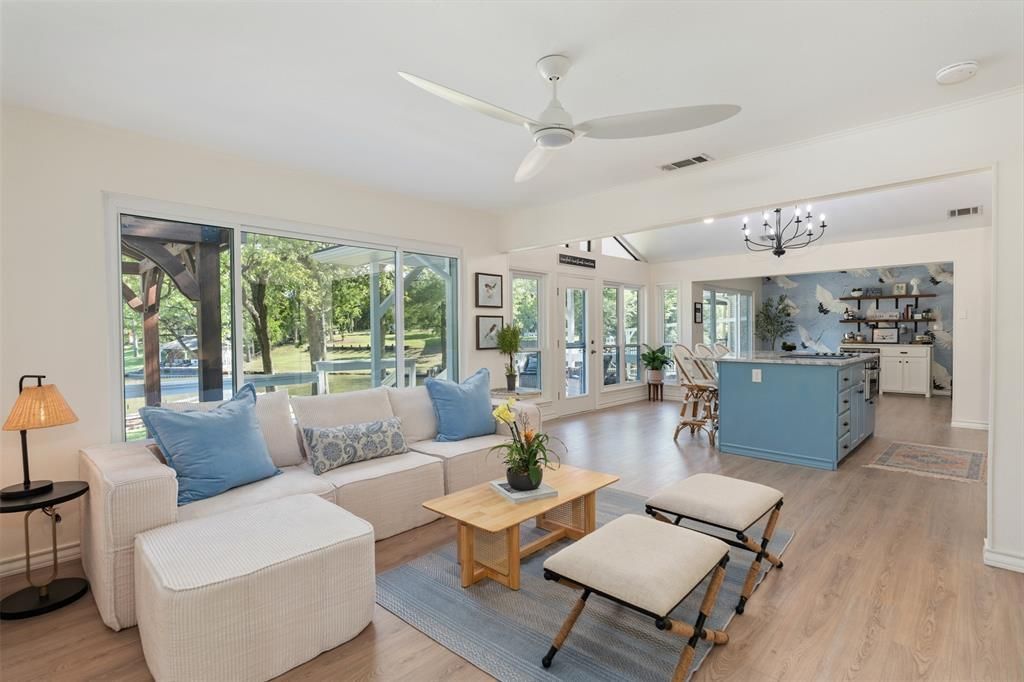 Discover the perfect blend of modern updates, classic charm, and lakeside serenity in this beautifully renovated 2-bedroom, 2-bath home, and just steps away, a separate 350 sq ft guest house offers private accommodations with its own full bathroom—perfect for extended family, friends, or teens &kids. The bright, open layout of the main house features new engineered hardwood floors throughout and fresh interior paint that enhances its clean, inviting feel. The living and dining areas flow seamlessly into a newly updated kitchen with quartz countertops, a large center island with bar seating, and stylish new fixtures—all with relaxing lake views. The spacious primary suite is a true retreat, with a fully renovated en-suite bathroom featuring a standalone soaking tub, new walk-in shower, modern vanity, and updated lighting. The second bedroom and full bath provide comfort and flexibility with matching finishes. Outdoor living is where this property truly shines. Enjoy 175 feet of prime lake frontage, and a quick boat ride to open water. A freshly updated boathouse with a boat lift makes lake access effortless, while the large covered back patio provides a perfect space for morning coffee, evening sunsets, or weekend grilling. A newly landscaped large backyard with open green space is ideal for pets, play, or peaceful relaxation. Additional highlights include a spacious RV carport with full hookups, new ductwork, a tankless water heater, and modern finishes throughout. From the stylish interior to the functional outdoor spaces, this turnkey lakefront home offers comfort, charm, and lasting quality. Whether hosting guests, unwinding by the water, or enjoying the peaceful setting, this property offers great Cedar Creek Lake living in a beautifully refreshed, move-in-ready space.