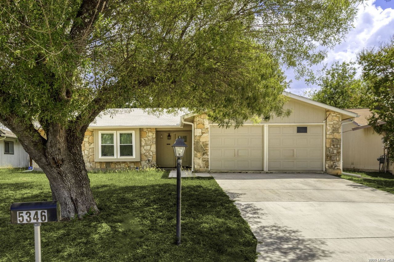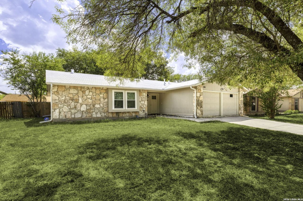 This charming 3 bedroom and 2 full bathroom home is ready for you. Located minutes from Highway 35 and Loop 410 with shopping and restaurants nearby. Interior features tile flooring throughout this house. Spacious family room with a wood burning fireplace. A roomy primary bedroom that offers an airy size bathroom with a double vanity, his and her walk-In closets. Second bedrooms share a full bathroom with a vanity. Exterior features covered patio with fenced backyard and mature trees. Recent Updates Include HVAC System 2023, Light Fixtures, Fans and Brand-new energy efficient windows and sliding glass doors.
