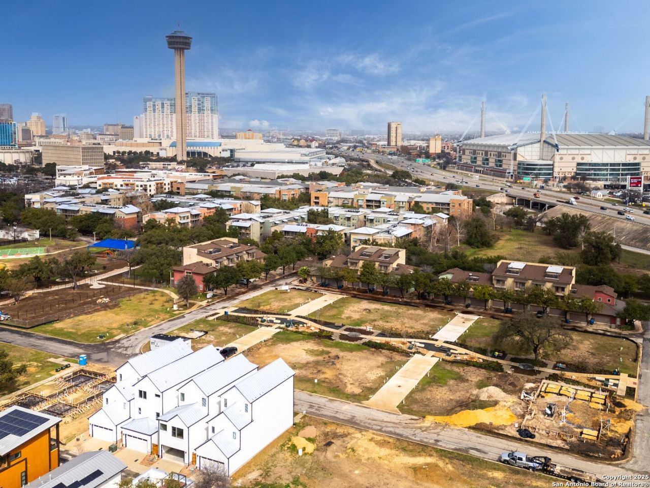 Welcome to Victoria Commons, located in the culturally rich and vibrant Lavaca Neighborhood part of Southtown. Steps from everything Downtown San Antonio has to offer, including award-winning restaurants, cocktail lounges, coffee shops, vibrant arts scene, theater and music venues, Alamodome, Hemisphere-Civic Park, Riverwalk, Blue Star Arts Complex, Museum and Mission Reach, and ease of access to major expressways. Dont miss out on the chance to experience the best of city living in this truly exceptional home. Experience the Espada floor plan, a seamless blend of contemporary design and everyday comfort. The entry level features two spacious secondary bedrooms with a full bath and attached two-car garage. Second level boosts an open-concept main floor which centers on a bright living area that flows into the dining and kitchen. The spacious kitchen features quartz countertops, a generous island, tasteful backsplash, sleek appliances, gas cooking, custom cabinetry, pantry, and utility room. On the second level the primary suite offers a tranquil retreat with an office or reading space, dual-vanity bath, large walk-in shower, and a generously sized closet. A versatile third level hosts a spacious game room with a large balcony, plus a third a study, gym, or office space and a full bath. Thoughtful design, abundant upgrades, and energy-efficient, low-maintenance features make everyday living effortless. Listing images are for representation purposes only and vary for all floor plans.