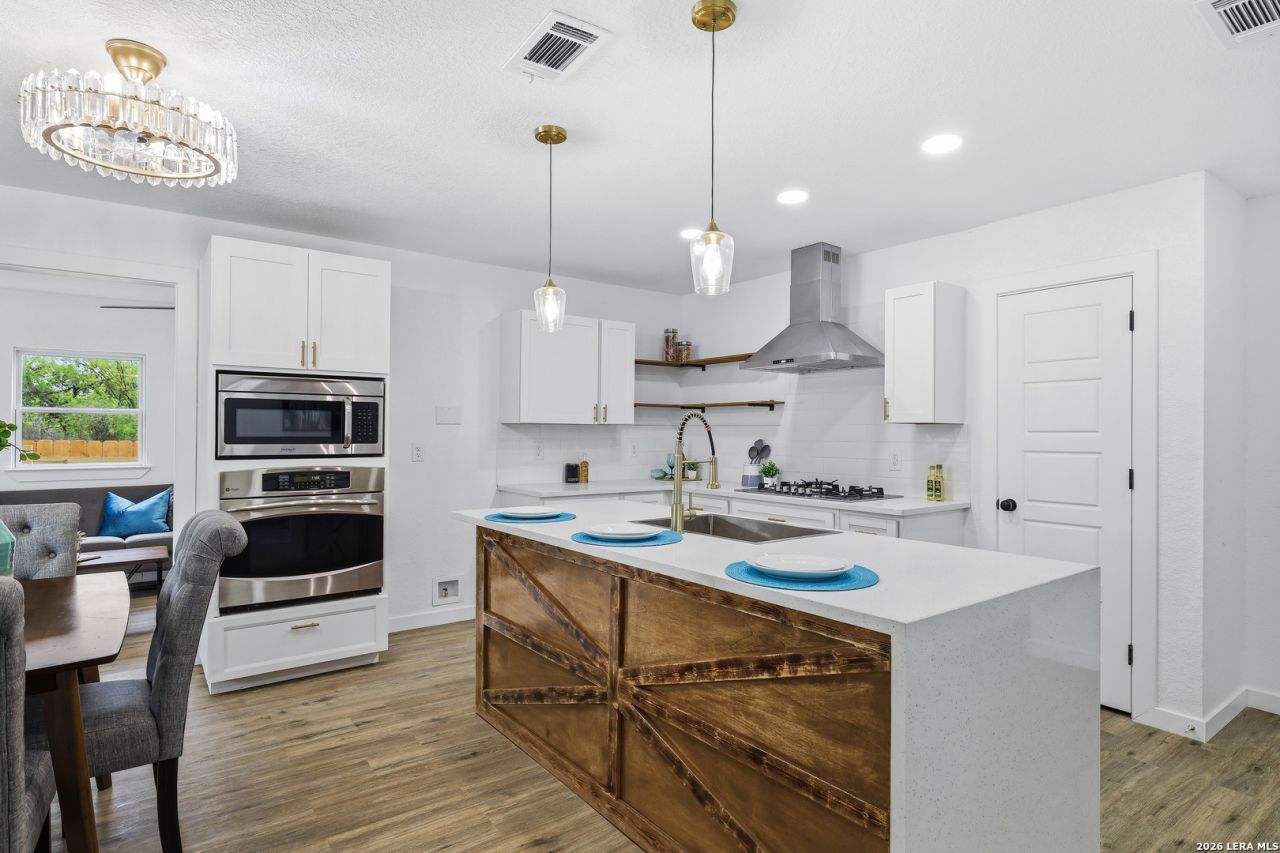OPEN HOUSE - 4/12 from 1:30pm-3:30pm!! Beautifully reimagined and move-in ready, this updated 4-bedroom, 2-bath home offers the perfect blend of style, function, and location. Situated on a corner lot with no rear neighbors and backing to Rainbow Hills Park, this home delivers added privacy and convenience. Inside, youll find a bright, open-concept layout where the kitchen, dining, and main living area flow seamlessly together-ideal for everyday living and entertaining. Just off the dining area is a spacious second living room, offering the flexibility for a family room, game room, office, or media space. The stunning new kitchen is the centerpiece of the home, featuring white cabinetry with elegant gold accents, a built-in oven, a large island with a waterfall quartz countertop, and abundant workspace and storage. New luxury vinyl plank flooring runs throughout the home, complemented by all new doors and energy-efficient LED lighting that gives the entire interior a fresh, modern feel. Both bathrooms have been thoughtfully remodeled with stylish finishes, while major updates including new windows, a new HVAC heat pump system, and a newer water heater provide comfort and peace of mind. Outside, youll find a welcoming covered front porch, and a large covered two-car carport. The oversized backyard is a blank canvas, ready for a garden, play area, outdoor kitchen, or whatever you envision. Located in an established community just minutes from Lackland Air Force Base, shopping, dining, and major highways including I-410, US-90, and SH-151, this home combines convenience with modern updates in a truly standout package.