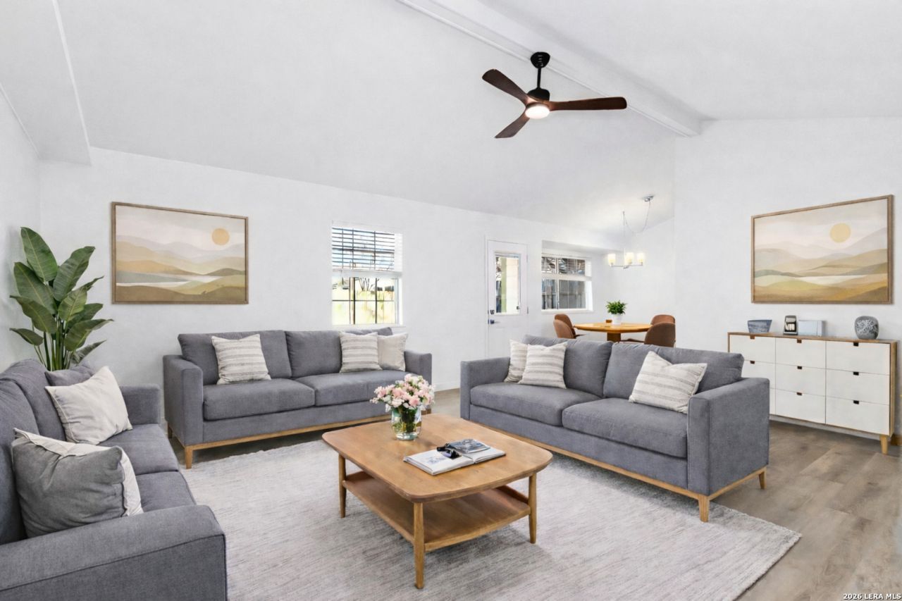 Welcome to 5618 Timber Rail, a beautifully updated ranch-style home that has been thoughtfully reimagined from top to bottom. This one-story home blends classic charm with modern finishes, creating a warm and welcoming space for everyday family living. The upgrades begin with the exquisite xeriscape front yard and crushed granite walkways. As you enter the home you will immediately notice the warm, beautiful luxury flooring throughout. The kitchen is the heart of the home, featuring Fantasy Brown marble countertops, new appliances, custom slow close cabinetry, and a stylish herringbone backsplash. The primary suite offers a relaxing retreat with a sliding barn door and a fully remodeled bath complete with dual vanities, custom tile work, and a modern walk-in shower. New ceiling fans have been added in every room for extra comfort and the new HVAC was installed last year. Relax in your private back yard with fresh landscaping and an over-sized storage shed, offering endless possibilities for play, pets, gardening, or entertaining. Located near Cathedral Rock Park with miles of walking and biking trails, SeaWorld, UTSA, and Joint Base San Antonio, this move-in-ready home offers space, comfort, and a location families will love. Schedule your showing at 5618 Timber Rail today!