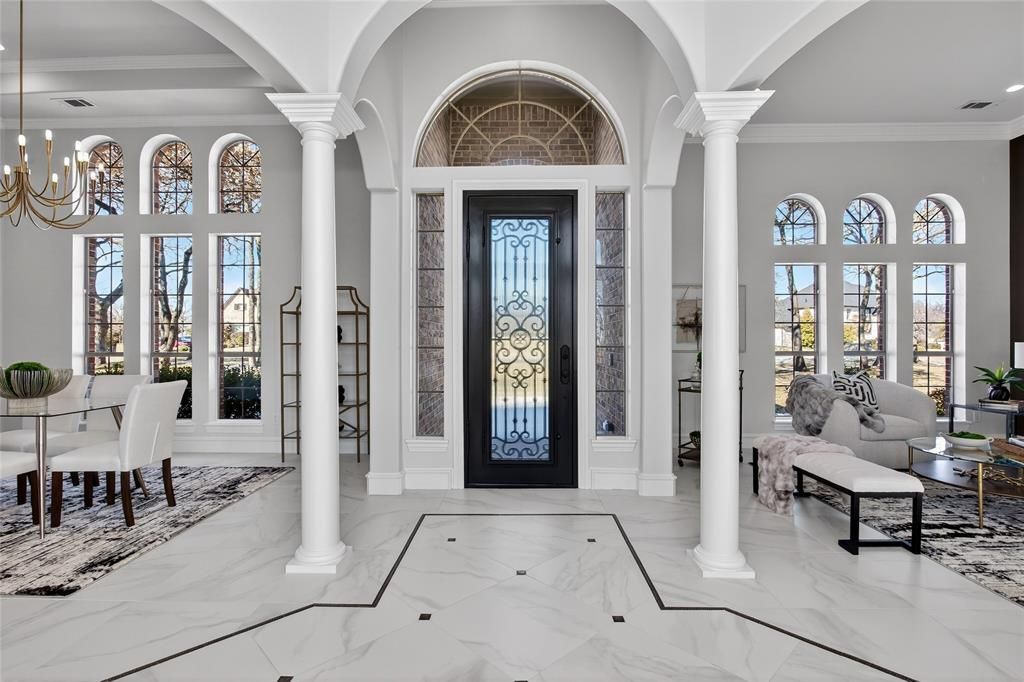 Welcome to elevated living in the prestigious 24-7 guarded, gated golf course community of Tour 18. Situated on just over 1.5 acres, this beautifully updated 5-bedroom estate spans 4,572 square feet and showcases nearly $500k in recent upgrades designed for both luxury and peace of mind.A stately presence and expansive 3-car garage set the tone for what awaits inside. The entire interior has been freshly painted, creating a light, bright, aesthetic enhanced by expansive windows that flood the home with natural light. New flooring adds warmth and sophistication throughout the main living areas.The fully remodeled kitchen is a showpiece, thoughtfully redesigned with premium Wolf appliances, Sub-Zero refrigeration, and Cove dishwasher, convection and steam ovens, quartzite countertops in kitchen, island and butler pantry stoneguard protected. Bonus is a stunning Wolf coffee bar—perfect for elevated daily living and entertaining alike. Open-concept living spaces flow seamlessly, offering both elegance and functionality, while a designated study provides an ideal work-from-home retreat.The primary suite is a luxurious sanctuary featuring a complete spa-inspired bath remodel and an exceptional custom closet. Two additional bedrooms are conveniently located on the first floor, offering options for guests or multigenerational living.Upstairs, you’ll find two spacious bedrooms connected by a Jack-and-Jill bath, a versatile loft space, and a dedicated media room perfect for movie nights or game days.Major system updates provide added value and confidence, including two new HVAC units and a new roof installed in 2024—plus numerous additional enhancements throughout the property.Step outside to the covered patio with built-in grill, designed for effortless indoor-outdoor entertaining while overlooking your expansive acreage. This is a rare opportunity to own a meticulously upgraded estate in one of the area’s most sought-after golf communities.