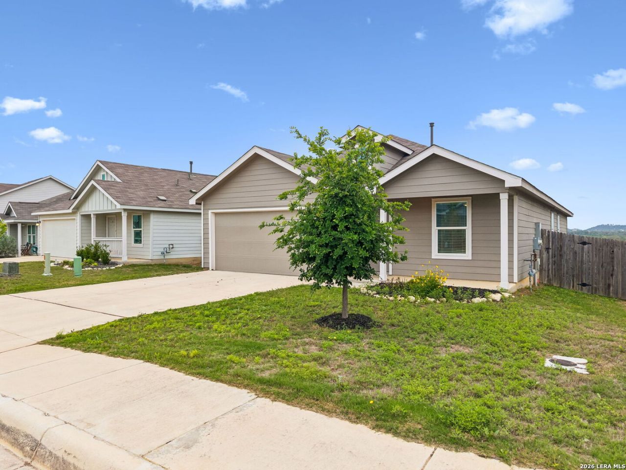 Enjoy breathtaking Hill Country views from this 4bedroom singlestory home designed for comfort and style. The living room features a large picture window, perfectly framing the beautiful skies and rolling landscape beyond. A living and dining room combination creates a welcoming space for everyday living and entertaining. The kitchen offers granite countertops, abundant cabinet and counter space, and flows seamlessly into the main living areas. The open floor plan is enhanced by clean white walls, a modern gray color palette, and durable vinyl plank flooring throughout. Step outside to a nicely sized backyard, ideal for relaxing, entertaining, or simply enjoying the peaceful Hill Country setting.