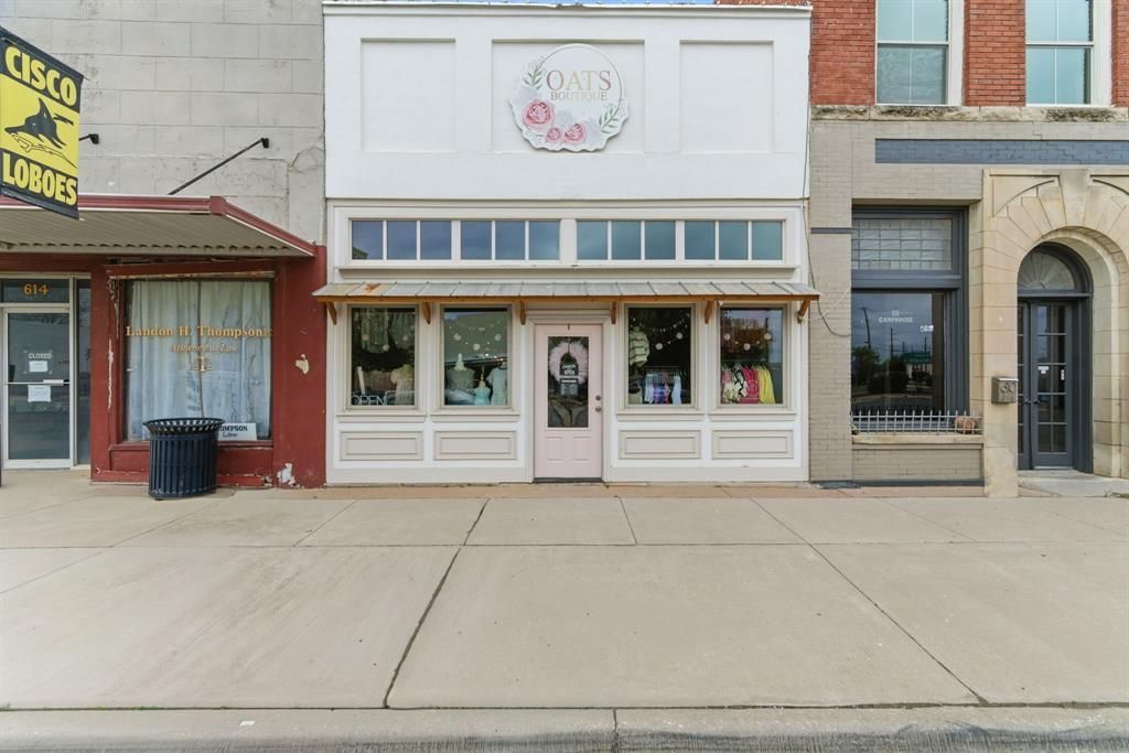 Located in the heart of Downtown Cisco on highly visible Conrad Hilton Boulevard, this charming two-story commercial property offers a rare opportunity to own a piece of local history in a prime retail location. Currently operating as a successful clothing boutique, the space is full of character and thoughtfully designed, making it ideal for a variety of retail or business concepts. The main level features an inviting storefront with excellent visibility and natural light—perfect for showcasing inventory and attracting foot traffic. Inside, you’ll find a well-laid-out retail floor, a dedicated fitting room, and a spacious back stock area that provides ample room for storage and inventory management.Upstairs, a loft-style second level offers flexible space that can easily function as additional retail, office space, creative workspace, or storage—adding both charm and versatility to the property. With over 2,200 square feet, established business potential, and a prime location along one of Cisco’s most traveled areas, this property is perfectly positioned for entrepreneurs ready to bring their vision to life. Whether continuing as a boutique or introducing a new concept, this is a standout opportunity in the heart of Downtown Cisco.