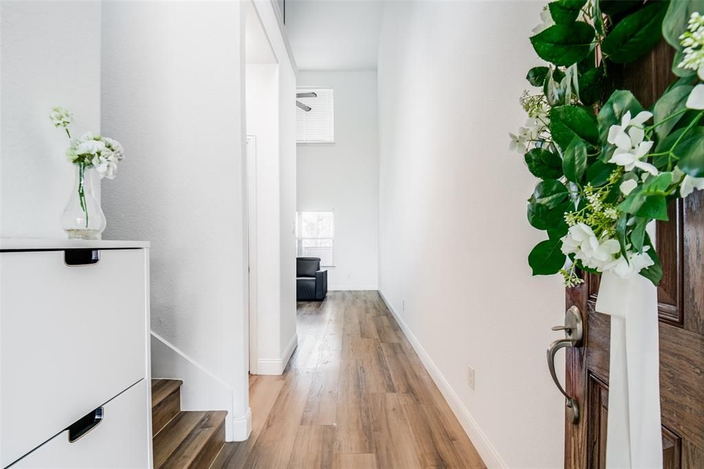 Beautifully renovated and spacious townhome featuring soaring ceilings and abundant natural light. The open floor plan showcases gleaming wood floors throughout — no carpet anywhere, one of the home’s standout features, offering a clean, modern look and easy maintenance.The kitchen includes granite countertops and new stainless steel appliances, including a refrigerator, and opens seamlessly to the living and dining areas. A convenient half bath and laundry area are located on the first floor.Upstairs, the private primary suite offers a walk-in closet enhanced with an IKEA system closet designed to maximize storage efficiency, along with an en suite bath featuring a separate tub and shower. A spacious secondary bedroom and a full bath complete the second floor.Enjoy a private backyard perfect for pets and outdoor relaxation. Community amenities include a swimming pool, basketball court, and dog park. Excellent location with easy access to Hwy 75 and nearby shopping and dining. Move-in ready!
