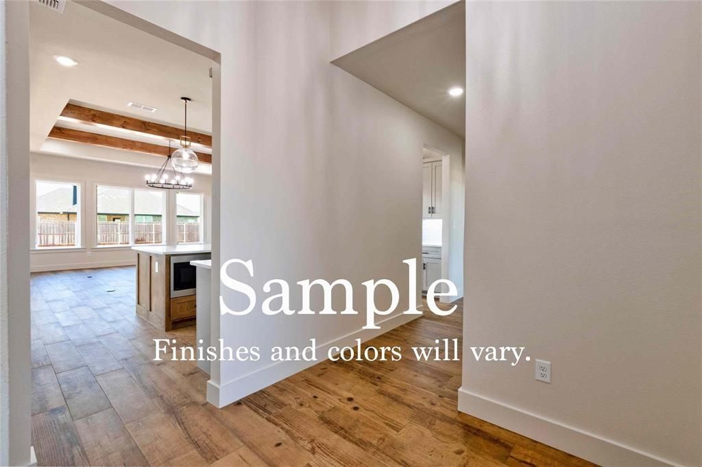 Welcome to this beautifully designed 4-bedroom, 2-bath home in Elm Creek at Wylie, located in Wylie ISD (West). With approx. 2109 sq. ft. of living space, this home offers a spacious open layout perfect for everyday living and entertaining. The large dining area is ideal for hosting gatherings and the living room features a stylish electric fireplace that adds warmth and character. The kitchen includes a generous one-level island, granite or solid surface countertops, stainless steel appliances, and abundant cabinet space. Vinyl flooring runs throughout the home. Enjoy a fully landscaped yard with a front flowerbed, full lot sprinkler system, and a 6ft wood privacy fence for the backyard. Neighborhood amenities include a community pool, dog park, and walking trails. Get this home under contract now to personalize your finishes and make it truly your own! Built by trusted local builder Texas Pride Custom Homes. Estimated completion June 2026