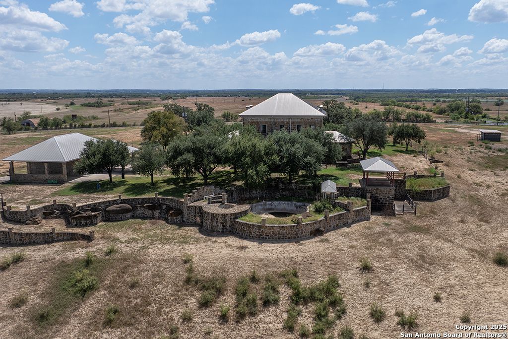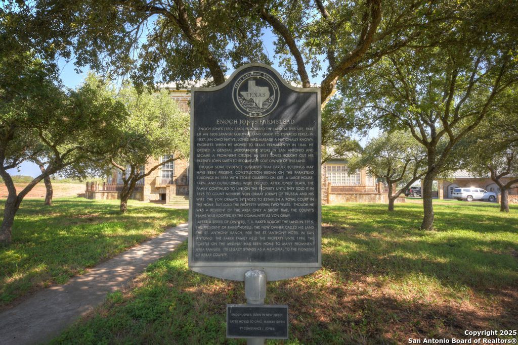 A rare opportunity to own a true piece of Texas history. This remarkable 100-acre property features a Spanish Colonial-style barn dating back to the 1700s, crowned with a standing seam metal roof, alongside a pole barn, cattle pens, and horse stalls. The land offers multiple water wells, outdoor arena, a stocked pond, river frontage, and a stunning bluff with panoramic views of the San Antonio skyline. The grounds are graced with massive live oak trees, perimeter ranch fencing, multiple private gated entrances, and excellent paved road frontage, just a few miles from the interstate. A unique stone pool, quarried from the property itself, and a charming guest house with loft, kitchen, and living quarters add to its appeal. The main home, built entirely of masonry, was among the first in the area to feature indoor plumbing. With original wood floors, multiple living and dining areas, several fireplaces, and a new metal roof, this shell awaits restoration to its original luster. Rich in history and character, this estate blends heritage and potential, an extraordinary chance to steward a legacy property unlike any other.