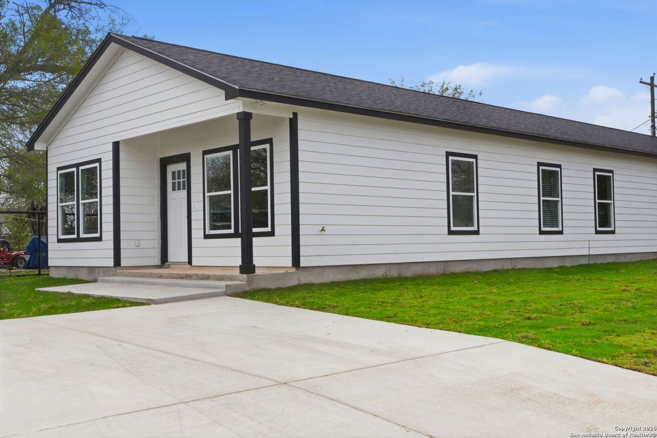 New construction, beautiful finishes throughout, a perfect place to call home! This is a 3 bed, 2 bath unit. Located one block off of 181 in Floresville downtown area. Easy access, quiet streets, brand new duplex just waiting for you! Fenced in yard, parking pad, stainless appliances, solid surface countertops, blinds and a fresh new build ready for immediate move in! There are 2 units available. Both are 3 bed, 2 bath.