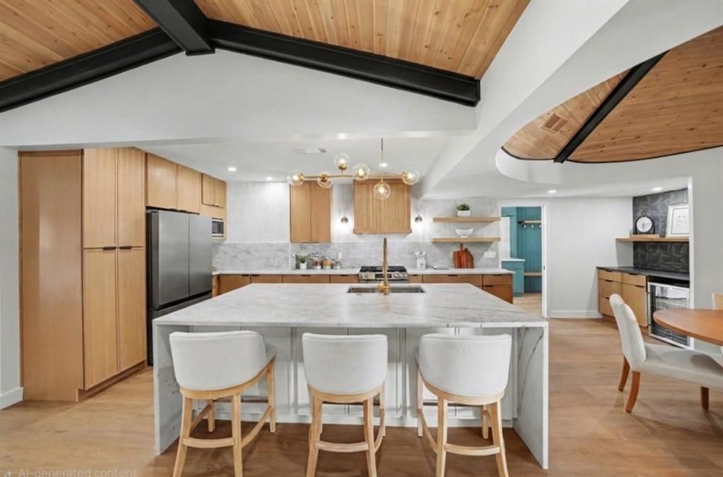 OPEN HOUSE, SATURDAY & SUNDAY 2–4 PM! Discover refined modern living in this STUNNING fully remodeled home with a backyard oasis, located in the highly sought-after Merriman Park Estates. Completely reimagined by Together Design and Build, this 2,701 sq ft luxury residence sits on a 0.2-acre lot and blends sophisticated design with high-end craftsmanship. Featuring 4 beds, an office, 3 designer baths, and a 2-car garage, the home has been thoughtfully renovated with premium materials and upscale finishes throughout. From the moment you enter, you’re welcomed by a bright open-concept layout filled with natural light from brand new energy-efficient windows. The show-stopping kitchen features custom white oak cabinetry, Taj Mahal quartz countertops, an impressive 89”×54” waterfall island, SS appliances, and a cozy breakfast nook that opens to a stylish laundry room featuring a custom green cabinetry and ample storage. A stylish dry bar with wine cooler adds the perfect touch for entertaining. The elegant living room boasts custom ceiling paneling, a sleek electric fireplace with designer tile surround, and a dramatic accent wall with tile and LED lighting. The primary suite offers 2 walk-in closets and a spa-inspired wet-room with a standalone tub and floor-to-ceiling tile rainfall shower. 2 additional bedrooms share a sleek Jack-and-Jill bath, while the 4th bedroom features its own private bath, ideal for guests. Premium LVP flooring runs throughout, with elegant tile in the baths, complemented by designer lighting throughout. Step outside through the 96”x80” bi-fold patio doors to your own backyard oasis featuring a 4-person barrel sauna, cowboy pool, a custom-built deck, new paver walkway, and a new 8-foot privacy fence - perfect for relaxing or entertaining. Located minutes from White Rock Lake trails, the Dallas Arboretum, Lakewood, Town Center, Lower Greenville, with easy access to major highways, dining, shopping, and entertainment. Come see it before it's gone!