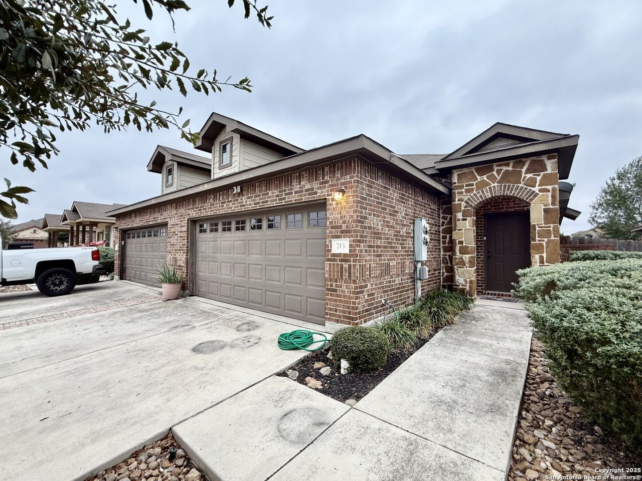 Welcome to your luxury duplex home in New Braunfels, TX! Talk about the perfect property to "House Hack!" Simply rent out both units, or rent out one side and live in the other! Unit 713 lease expires 07/20/2026, unit 717 is on a month to month lease! This luxury duplex home comes with numerous amenities and luxuries including a fenced, private backyard with a perfect patio for rest and relaxation, automatic sprinkler system, fully xeriscaped front yard, "wings" to hide trash cans, automatic garage door opener, woodgrain style tile flooring, carpet in all bedrooms, 2" faux wood blinds, beautifully tiled kitchen counter tops with a custom backsplash, kitchen island with ample storage and counter space, breakfast bar, high ceilings, spacious walk-in closets, and interior washer & dryer connections. Additional Amenities: 2 Car Garage, Pantry, Built in Microwave, Dishwasher, Double Vanities in Master bath, Large driveway. CISD Schools. Mileage to local military bases: 21.33 JBSA Randolph; 32.82 Joint Base San Antonio -Fort Sam Houston; 39.28 Brooks City-Base; 46.60 Lackland AFB. Do not miss this chance to own a piece of the beautiful city of New Braunfels!