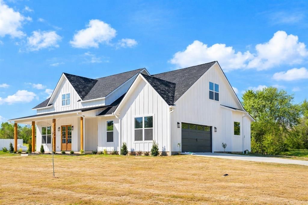 Seller is offering $10,000 in concessions to help cover buyer expenses! Experience the perfect blend of luxury and privacy in this stunning new construction Modern Farmhouse, perfectly situated on a quiet, low-traffic lot in the desirable Elmwood Addition of Mount Vernon, Texas. This brand-new custom home offers the rare freedom of no HOA fees while providing the high-end finishes and timeless curb appeal today’s discerning buyers crave. The exterior showcases classic board and batten siding, oversized windows, and a welcoming covered front porch, while the side-entry two-car garage preserves the clean, sophisticated architectural lines of the home.Inside, the open-concept interior is flooded with natural light and anchored by a vaulted great room featuring stunning exposed wood beams and a focal-point fireplace. The gourmet kitchen is a chef’s dream, equipped with sleek quartz countertops, a large prep-top island with seating, a window-view sink, and a massive walk-in pantry for effortless organization. Professional landscaping is currently in progress to complete the outdoor experience, which includes a matching covered back porch perfect for peaceful evening relaxation.Designed with a versatile split-bedroom floor plan, the home offers a private primary retreat tucked away for maximum seclusion. The spa-inspired ensuite features dual vanities, a freestanding soaking tub, a separate walk-in shower, and a private water closet. A dedicated guest wing includes two additional bedrooms sharing a well-appointed Jack-and-Jill bath. Upstairs, you will find 463 square feet of flexible bonus space, ideal as a fourth bedroom with a private ensuite, a home office, or a media room. Located just minutes from the charm of downtown Mount Vernon and the recreational beauty of nearby lakes, this property defines modern Texas living.