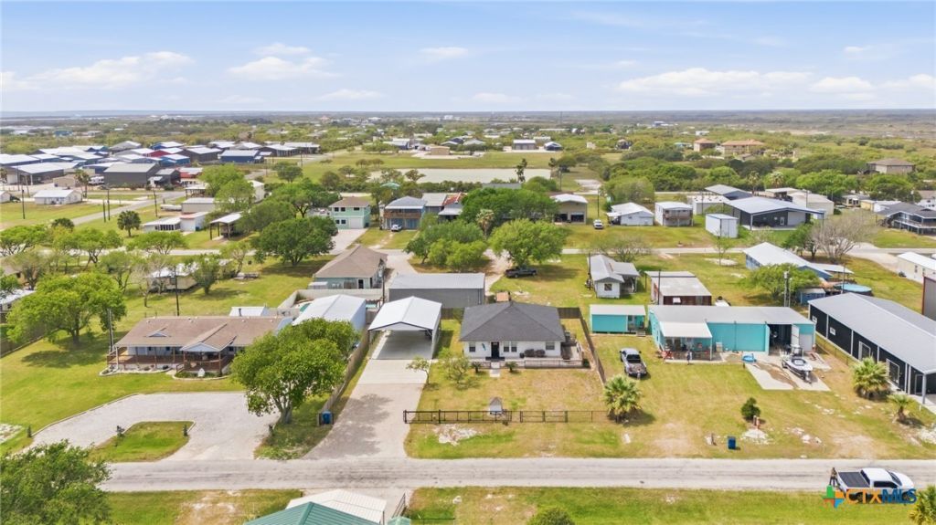This recently upgraded three-bedroom, two-bathroom home offers a harmonious blend of comfort, functionality, and features specifically designed for coastal living. The property features a double covered area situated on a concrete pad with a rock driveway and gated access?perfectly suited as an inviting outdoor entertainment space with festive lighting and coastal ambiance. It also serves as an ideal location for storing boats, RVs, or additional vehicles. Inside, the spacious primary suite provides a serene retreat, complete with an ensuite bathroom featuring a garden-style whirlpool tub and a discreetly positioned toilet area behind swinging doors. Adjacent to the primary suite is a workspace with a desk and chair, providing a convenient space for remote work or planning future fishing excursions. The open-concept kitchen and living area create a welcoming and cozy gathering space immediately upon entering the home, perfect for entertaining guests or engaging in everyday activities. Two additional bedrooms are serviced by a well-appointed hall bathroom with a bathtub. A thoughtfully designed utility room offers dual access points for convenience and functionality, equipped with washer and dryer hookups, space for a refrigerator, and direct access to the backyard and patio. This versatile space also serves as a rod room, complete with rod holders?an ideal solution for anglers seeking to organize and store their fishing gear efficiently.