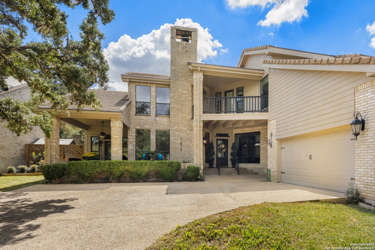 Beautifully updated home across from the golf course and country club! This rare find in Country Club Place offers easy living in a peaceful, tree-filled setting right across from the Fair Oaks Ranch Golf & Country Club with a path right out the front door leading to Club amenities. Step inside to discover a home thats been thoughtfully updated throughout - including a new roof and fascia, new flooring, updated light fixtures, HUGE picture window, and upgraded kitchen and bathrooms. The kitchen features new appliances and stylish finishes, while the primary suite includes a relaxing sitting area with patio access, and a fully renovated bath including a steam shower. Enjoy high ceilings, Pella windows and doors and a bright, open layout perfect for entertaining and everyday comfort. Outdoor living is exceptional, with a front porch for morning coffee, an upstairs balcony for sunset views, and a private backyard with a built-in BBQ, TV cabinet, and a newly enhanced gazebo for gatherings under the mature oak trees. Additional highlights include a golf cart garage, new garage flooring, and yard maintenance included for true lock-and-leave convenience. With direct golf cart access to the club at end of cul-de-sac, and just minutes to The Rim, La Cantera, and top-rated Boerne ISD schools, this home offers an ideal combination of location, lifestyle and luxury low-maintenance living.