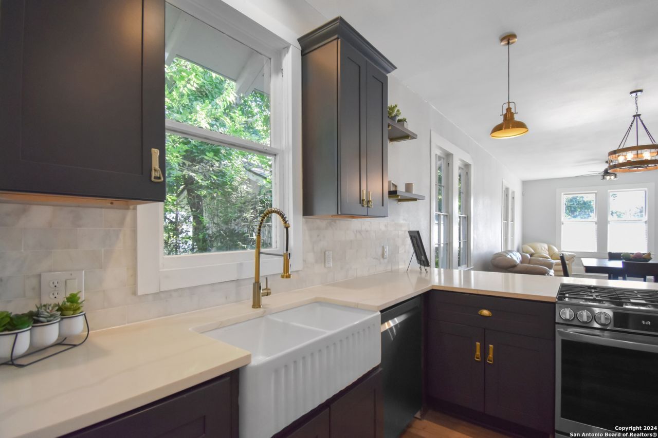 *Seller Financing Available* *BRAND NEW GUTTERS*APPLIANCES CONVEY* Nestled in the heart of Historic Dignowity Hill, this charming home features three spacious bedrooms and two pristine bathrooms. Impeccably maintained, the home boasts fresh, contemporary paint throughout, reflecting a super clean and modern aesthetic, Quartz counters, Luxury Vinyl Plank flooring, TANKLESS WATER HEATER, No carpet, REFRIGERATOR included, farmhouse sink, LG Appliances, Original Hardwood, marbled tile backsplash. Step outside to discover an oversized backyard oasis, perfect for relaxation and entertainment, while the amazing gated front yard offers a grand, inviting entrance. This residence seamlessly blends comfort and style, creating a perfect sanctuary for anyone!