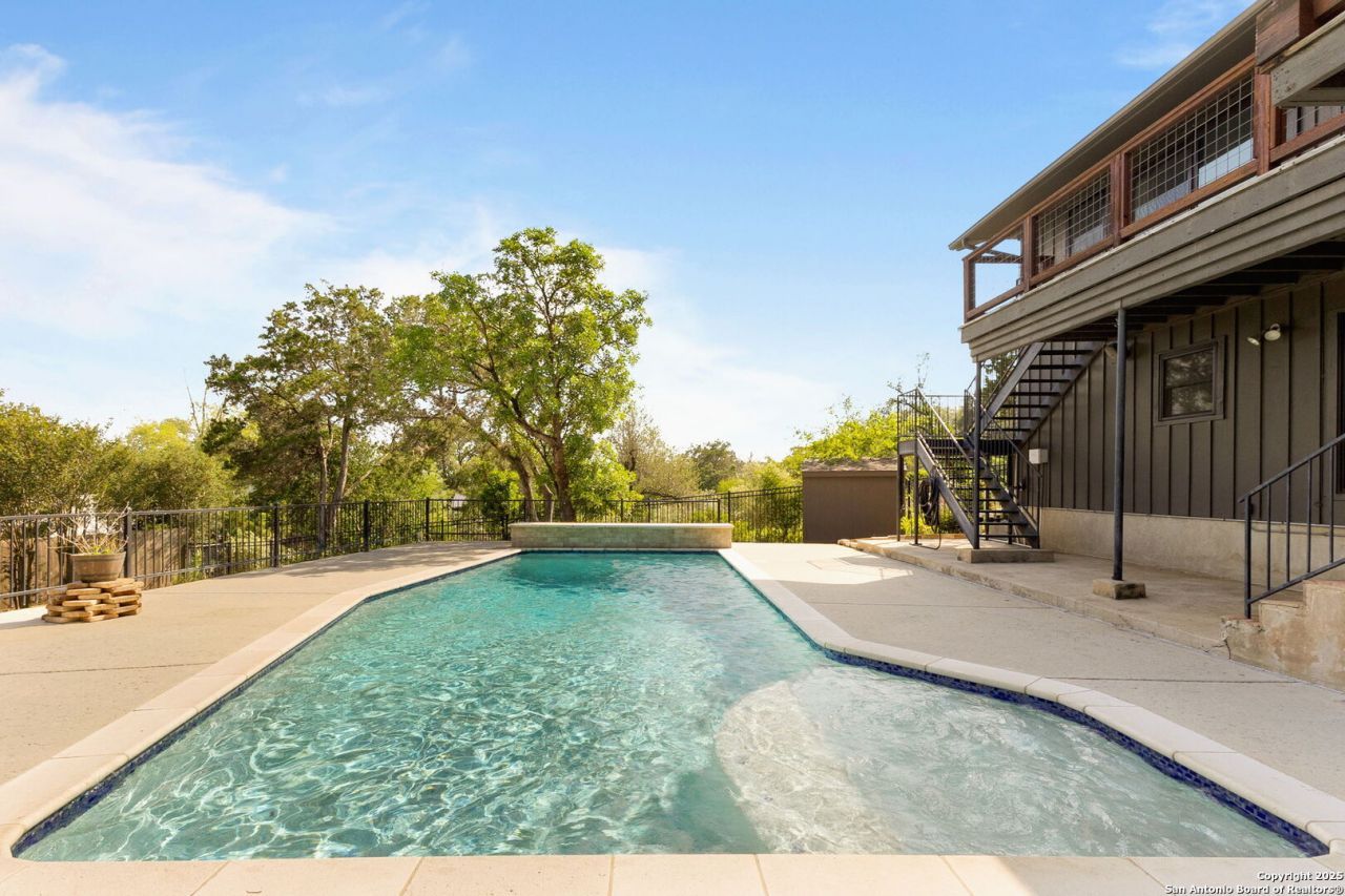 Price reduced! Remodeled 4 bedroom, 3 bathroom home "on the hill with long range views of New Braunfels. Home is set back from the road on a 1.18 acre lot, with a fully fenced backyard and gorgeous pool with Baja shelf, removable child safety fence, and water features. Upstairs you will find open concept living/dining with a fully remodeled kitchen including new Thermador range top, GE wall oven/microwave combo, and wine refrigerator. Ground level includes two bedrooms and a guest bathroom. Downstairs features an oversized family/game room, guest bedroom/bathroom, laundry and two bonus rooms that can be used for office space or extra storage. Plentiful outdoor space including covered second story deck, covered patio downstairs, and front courtyard/garden. Recent upgrades include: new roof, all new HVAC units, new windows and sliding doors throughout. See additional list of upgrades for more information. Prime location walkable to schools and less than a mile from Landa Park and downtown New Braunfels!