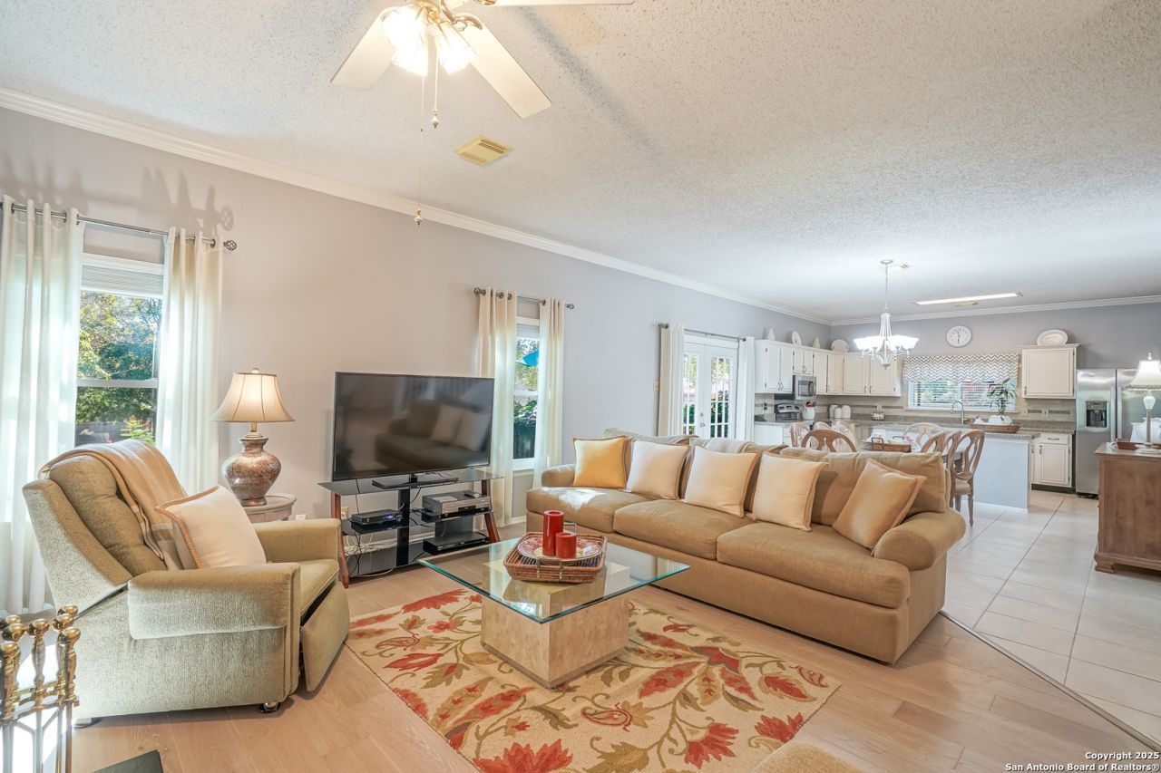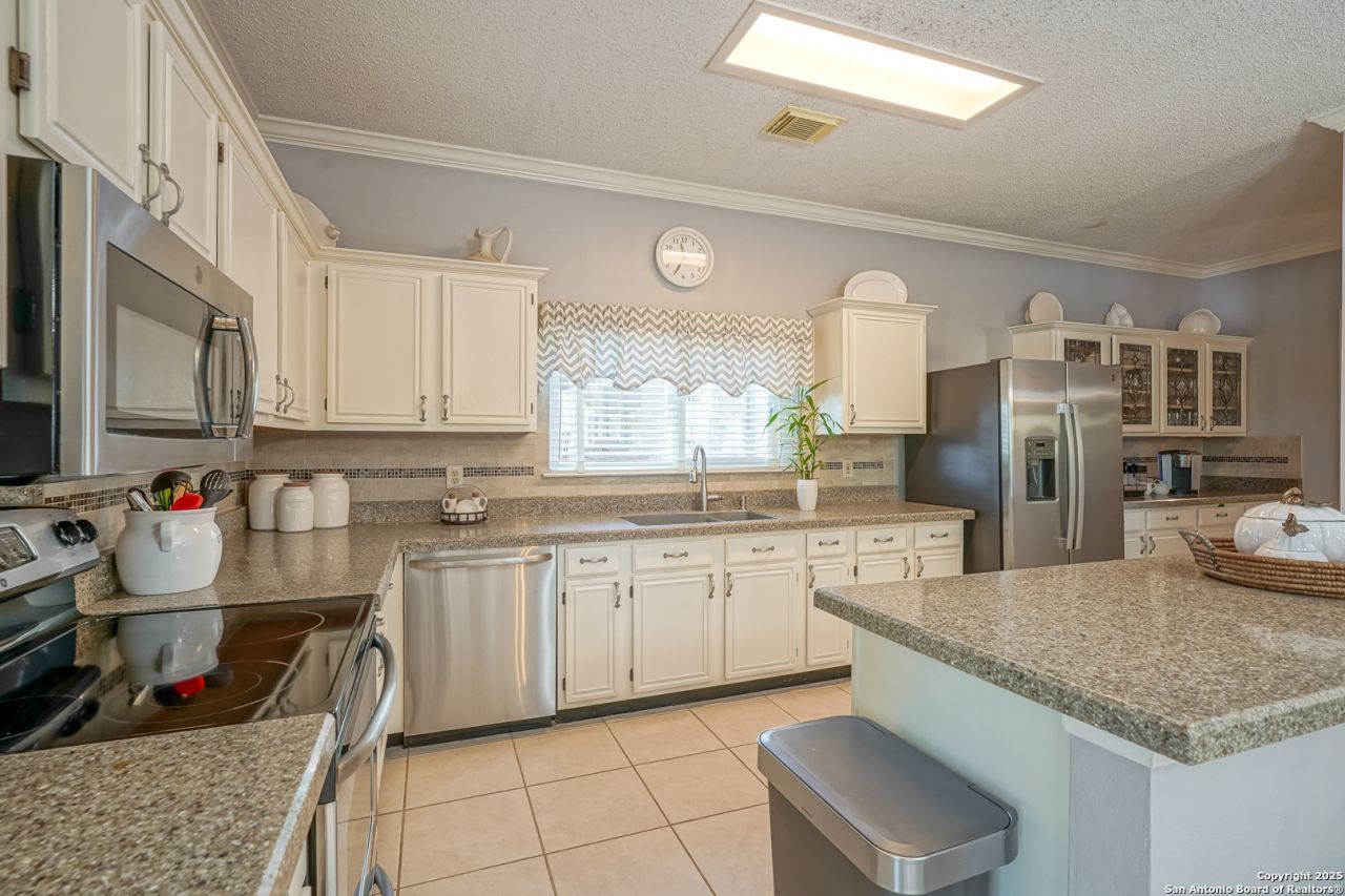 OPEN HOUSE March 1st 2-5. This beautiful one owner home is located in a fabulous neighborhood. This floor plan features 3 large bedrooms, 2.5 baths and double living and dining plus two car garage. Large entry between formal living and dining. Family room opens to kitchen and breakfast area. It is a perfect arrangement for entertaining. This updated kitchen makes it easy to cook and serve your family and guests. This updated home features newer flooring, replaced windows, hard surface counters and newer appliances, fresh paint, great deck with landscaped yard and more. You will be sold from first look. The master suite is light and spacious with sitting area. The two secondary bedrooms are large and have room for two double beds in each room. Immaculately maintained! Easy access to shopping and Randolph AFB and Fort Sam Houston. Estate sale Mar 5,6,7 (9-4).