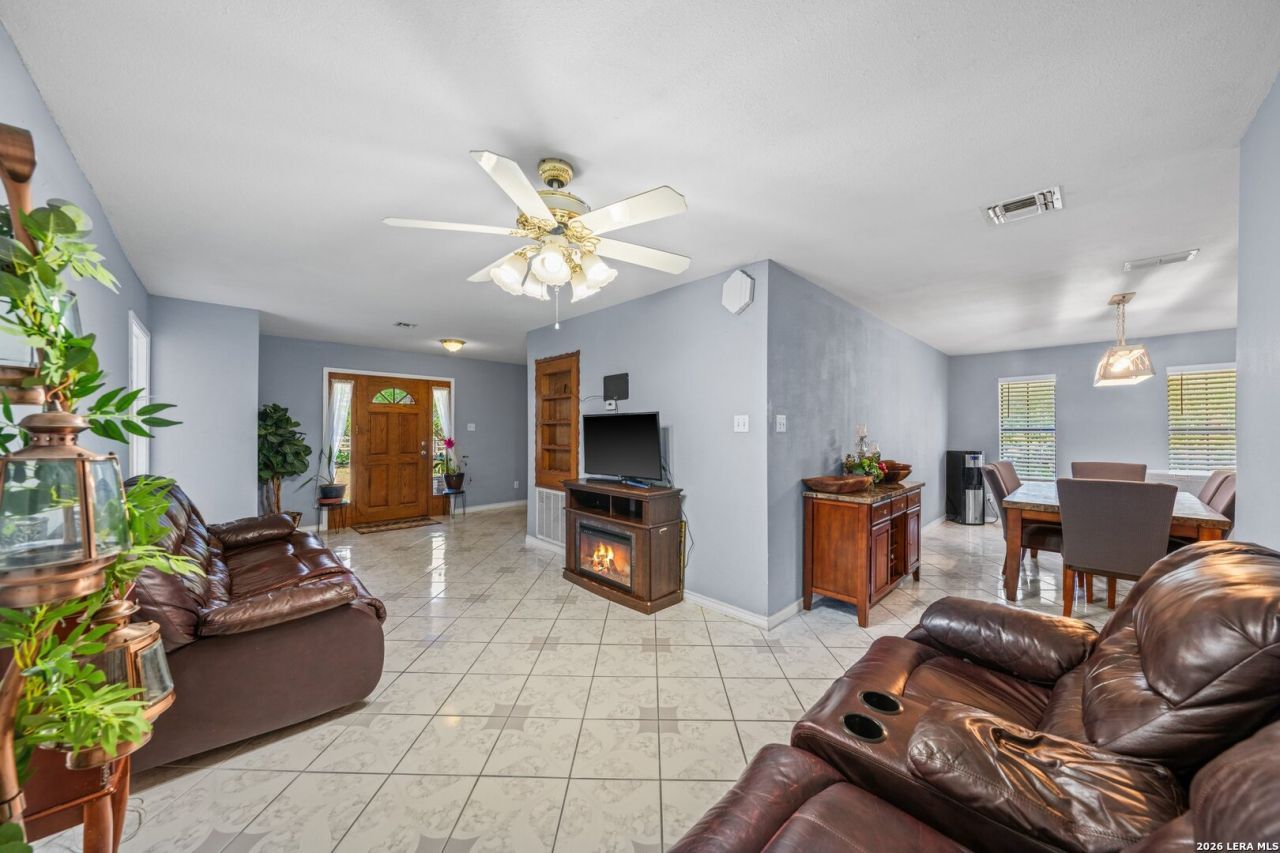 if you like the outdoors and privacy, this is the place . This19 acre property is fenced and cross fenced and has 4 wells with 3 in operation. There is an equipment shed, 4 car carport and live oak and mesquite trees, and a windmill. This home has 9 ft ceilings and an indoor laundry room. With a semi-open layout and tile floor throughout, This 5 bedroom home has it all.