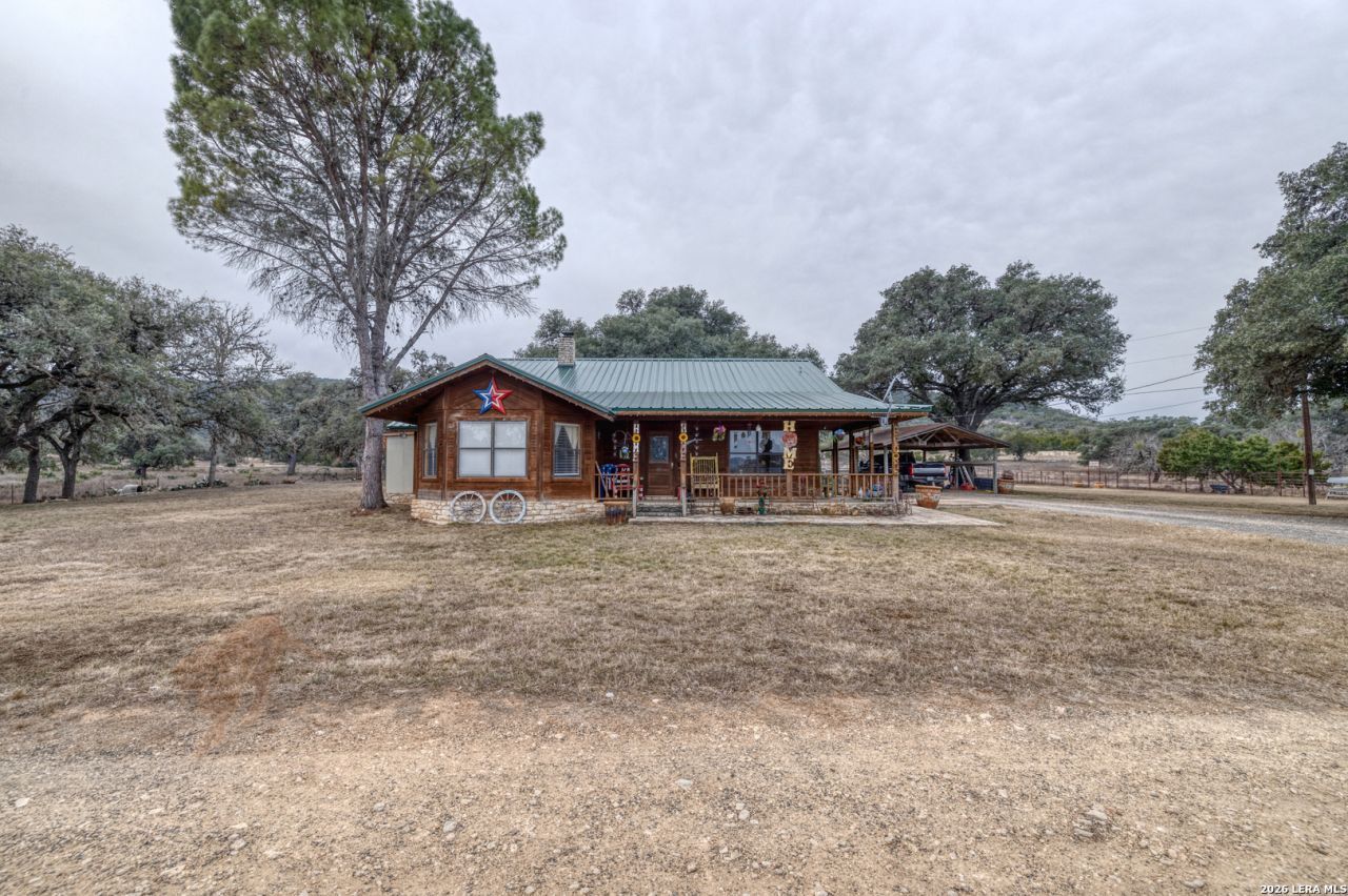 Beautiful ranch-style 4-bedroom, 2-bath home situated on an Ag-exempt property with level, highly usable land. 30 acres to be surveyed out of a larger tract. The home features a warm and inviting wood-burning fireplace and covered porches ideal for outdoor living, relaxing, and enjoying scenic Hill Country views. The property is shaded by mature, large trees and includes multiple barns and sheds-perfect for livestock, equipment, or hobby use. With paved county road frontage, this property offers both functionality and easy access. Conveniently located near Leakey, Texas, just minutes from Garner State Park and the crystal-clear Frio River, this is an exceptional opportunity to enjoy peaceful ranch living with nearby recreational amenities.